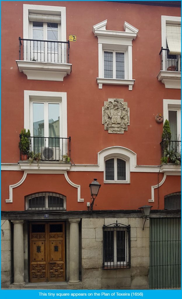 The first existing documentation regarding Plazuela de San Javier is the Plan of Texeira which dates back to 1656. The name of the little square is due to an image of San Francisco de Javier which was in a Society of Jesus house located there and very close to Plaza de la Villa.