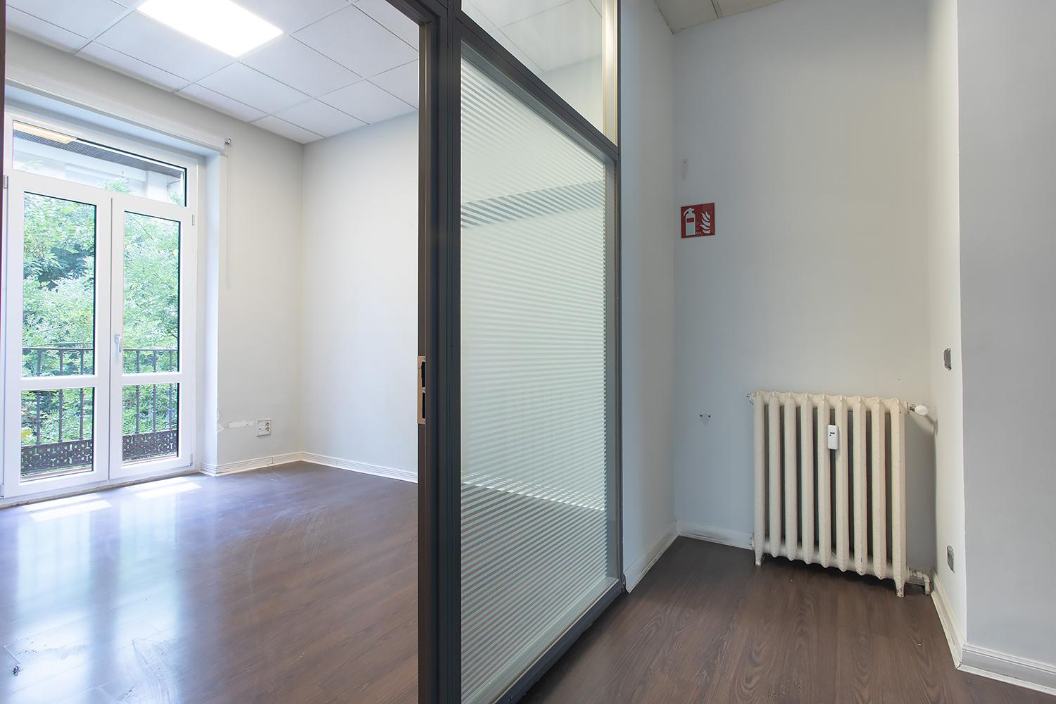 Fantástica oficina super representativa en la primera planta completa de un precioso edificio clásico en esquina, con 15 balcones a la calle y ventanas al agradable patio de la finca. 740 m2 útiles distribuidos en 22 despachos, 2 salas de juntas, 2 salas grandes multiusos y una recepción, además de sala de archivo y sala de racks. Techo practicable, suelos de tarima. Cableado por techos y paredes, con datos en todas las estancias. Calefacción central con contadores. Aire acondicionado por splits en paredes y techos, con controles individualizados en cada sala. Carpintería exterior de buena calidad, con doble cristal y climalit. Baños para hombres, para mujeres y también adaptados para movilidad reducida. Puerta de servicio. Portero físico de lunes a sábado. Portal accesible. 1.000 € coste de IBI y Comunidad a cargo del inquilino.