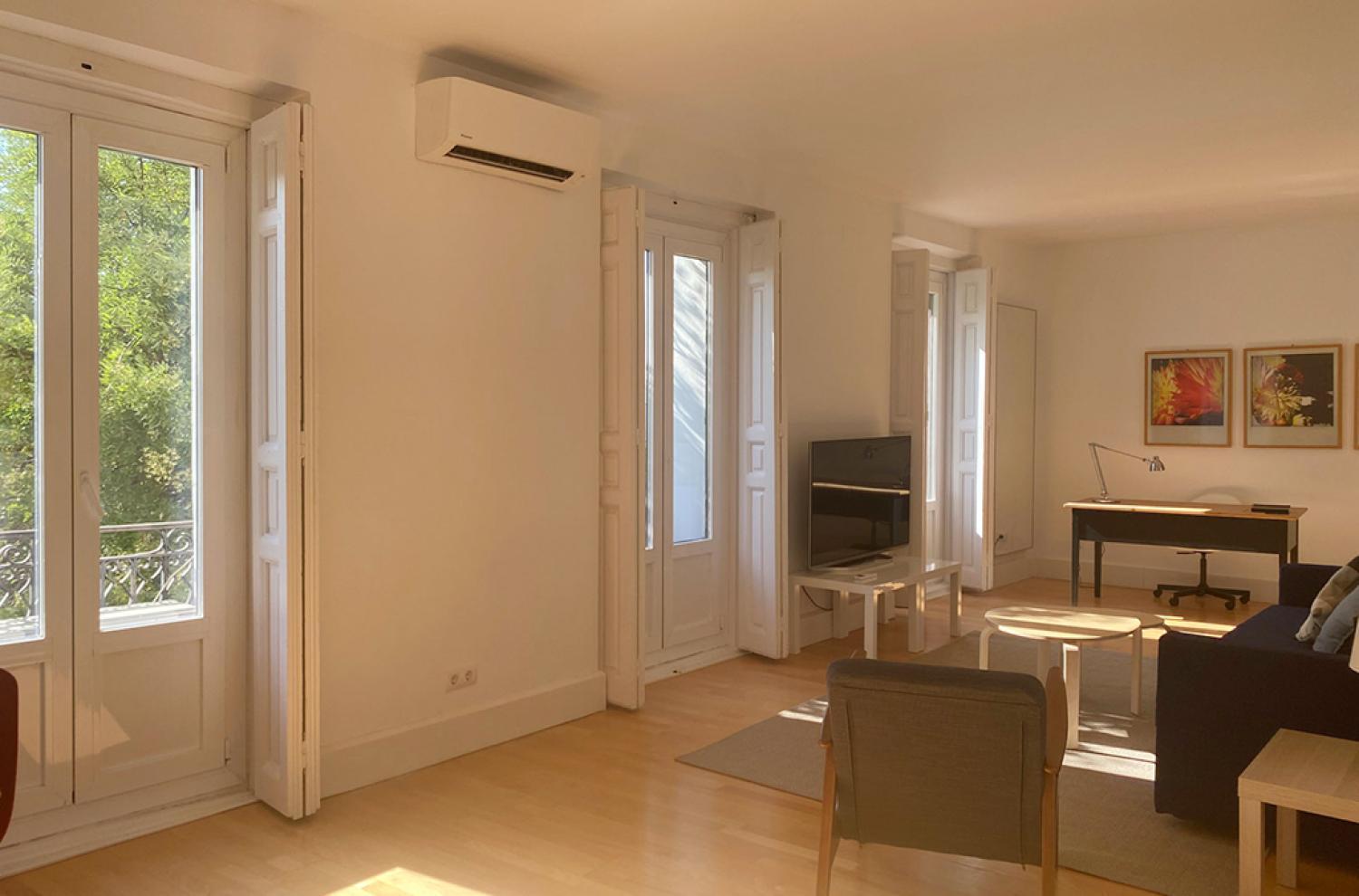 Estupendo piso en edificio clásico de 74 m2 útiles (82 construidos), en muy buen estado y amueblado, haciendo esquina, orientado a Sur y Oeste. Súper luminoso, con maravillosas vistas a la Catedral de la Almudena y Casa de Campo. Gran salón – comedor de más de 30 m2 con 3 balcones a la calle Bailén, algo retranqueado (con lo que se rebajan ruidos), y 1 a la calle Morería. Un dormitorio de buen tamaño, gran baño con armario y balcón a la calle Morería y un amplio vestidor, todo en suite. Tiene dos ventanas al salón, que le proporcionan mucha luz. Cocina totalmente equipada con electrodomésticos en muy buen estado, y balcón a la calle Morería. Suelos de tarima flotante en toda la casa, excepto el baño, con suelo cerámico en damero. Aire acondicionado por split. Carpintería exterior de PVC con doble cristal, súper aislante de ruidos y temperaturas. Contraventanas interiores y exteriores de madera. Calefacción y agua caliente individuales por gas natural.