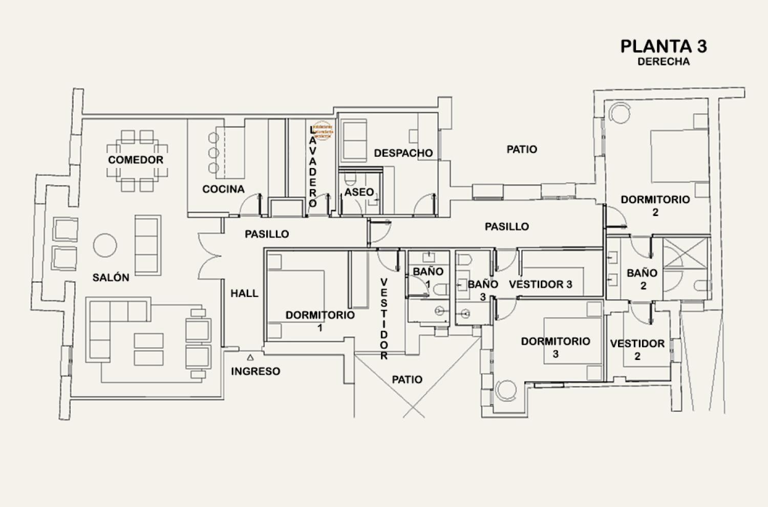 Un proyecto que combina elegancia y confort, con fácil acceso a las mejores zonas comerciales y de ocio, proporcionando un entorno ideal para disfrutar de un estilo de vida exclusivo. Piso en proceso de reforma en edificio clásico de 1920 en la mejor zona de Almagro. Vivienda luminosa con tres balcones a la calle (orientada al Sur). Comodidades: Hall recibidor, inmenso salón - comedor y cocina separada. Tres dormitorios, todos ellos con cuarto de baño en suite con vestidor. Lavadero independiente y cuarto de baño de invitados.