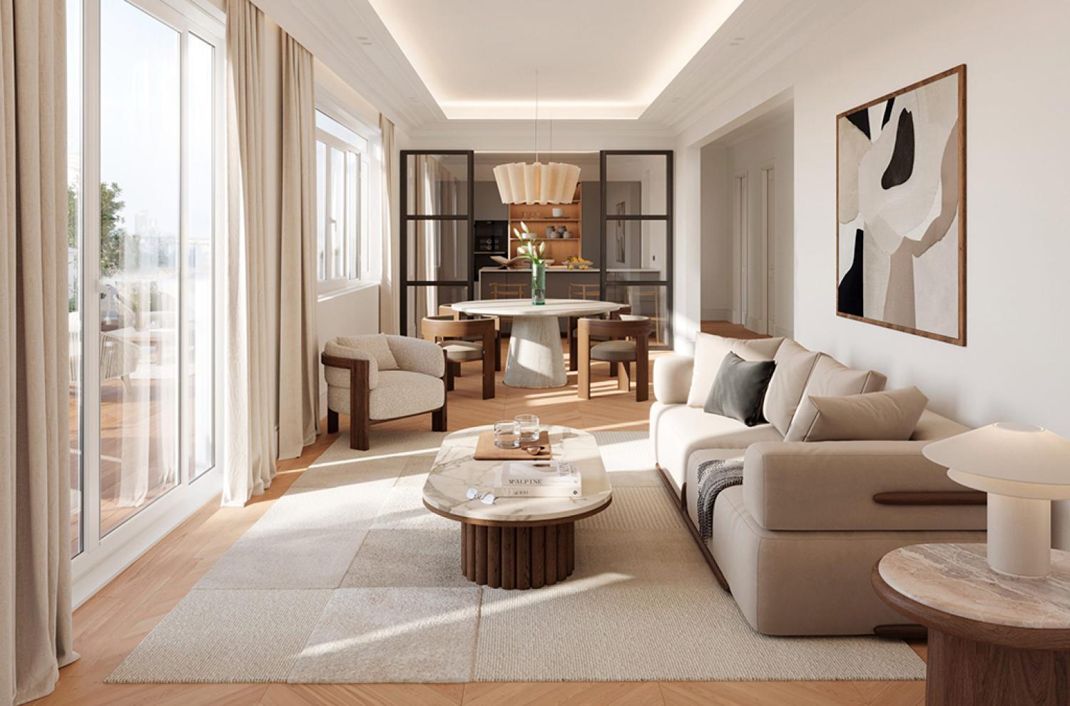 Maravilloso ático en lo mejor de la calle Almagro, espléndido edificio clásico de 1930. Fantástica terraza de 60 m2 orientada al oeste. Comodidades: Dos magníficos dormitorios en suite. Cuarto de baño de invitados. Zona de lavandería independiente. Preciosa obra de altas calidades y buen gusto. Se entrega amueblado. Ascensor.