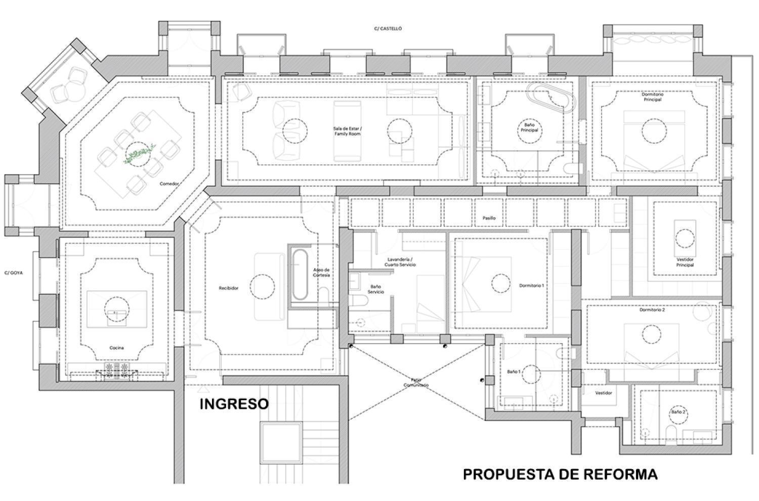 Inmueble, situado en un edificio representativo con fachada espectacular, destaca por su elegancia arquitectónica: numerosos balcones, miradores y balaustradas realzan su carácter señorial. Con 15 huecos al exterior y orientación a tres fachadas, la luz natural inunda los amplios espacios, realzados por techos de 3,30 metros de altura y una distribución que permite múltiples posibilidades de reforma. El portal majestuoso y la exclusividad de pocos vecinos por planta refuerzan la privacidad y distinción. Se encuentra para reforma integral. Hay propuesta de reforma.