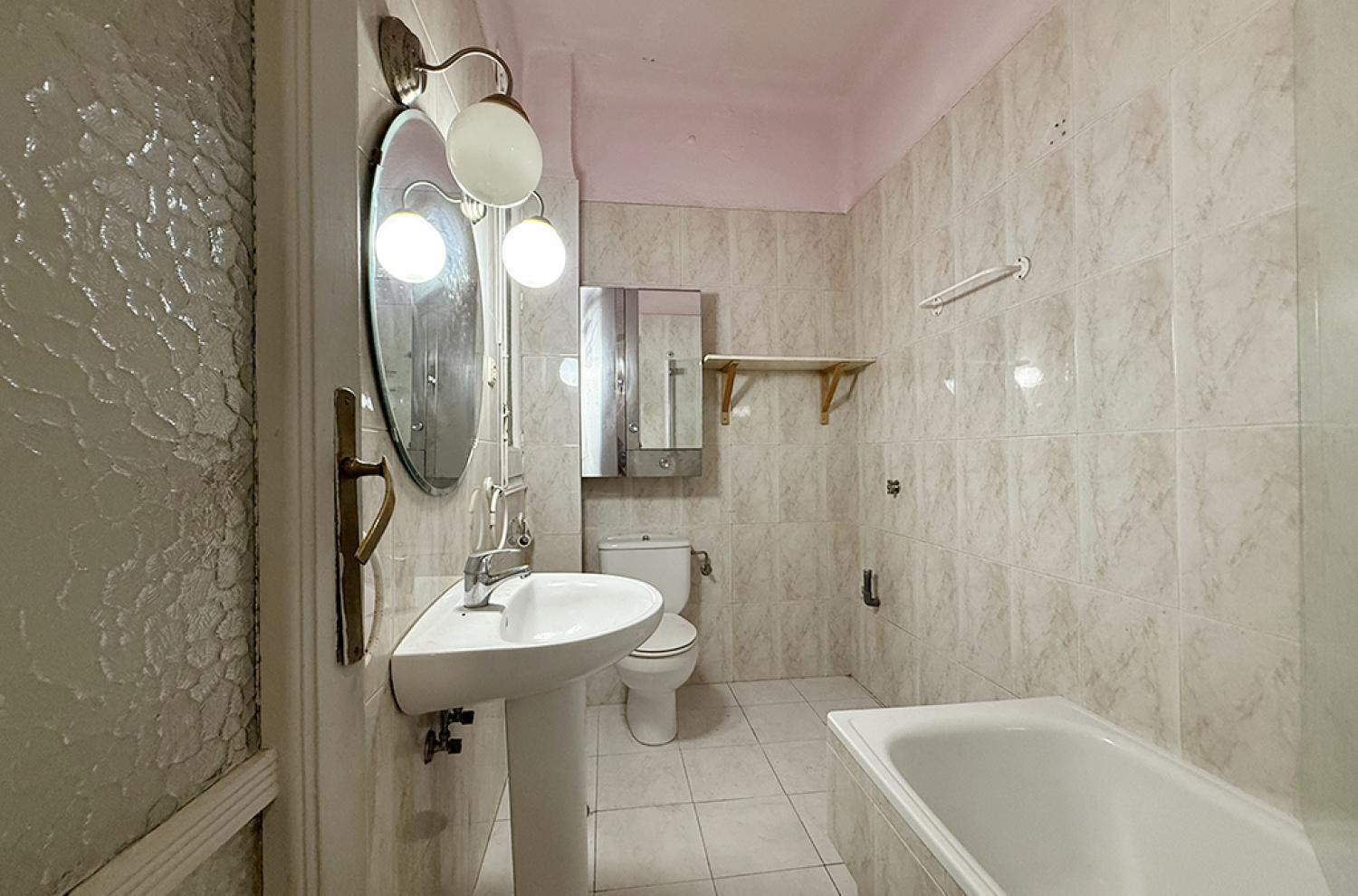 Finca del año 1932. El piso tiene orientación este. Techos altos y dos balcones a la calle. Luminoso y mucho potencial para realizar una reforma. Comodidades: Actualmente el piso tiene 3 habitaciones, salón, cocina y baño con bañera. 2 Balcones. Ascensor. Gastos de comunidad: 70€ / mes Gastos IBI: 200€ / año