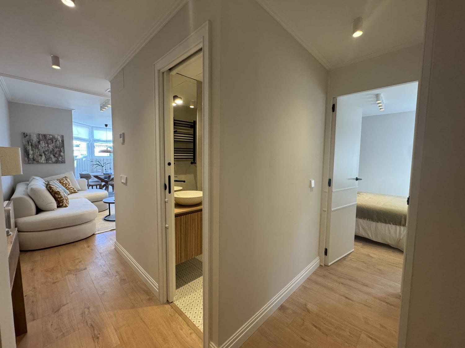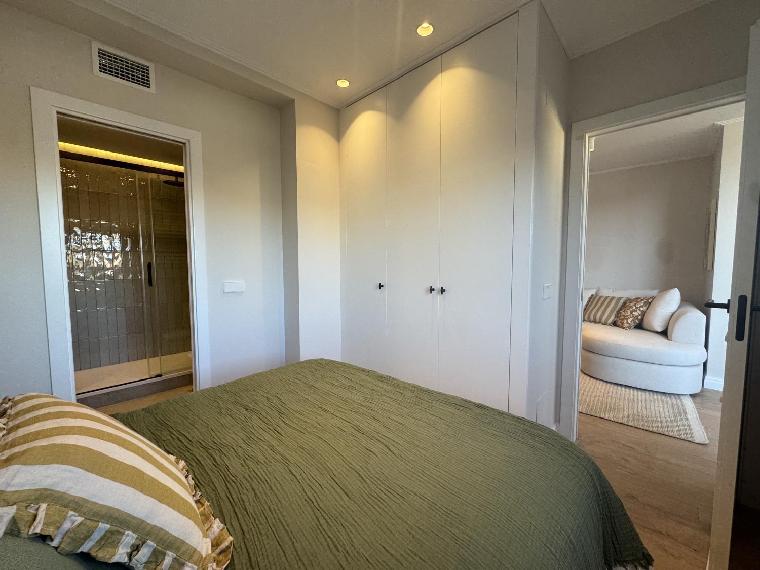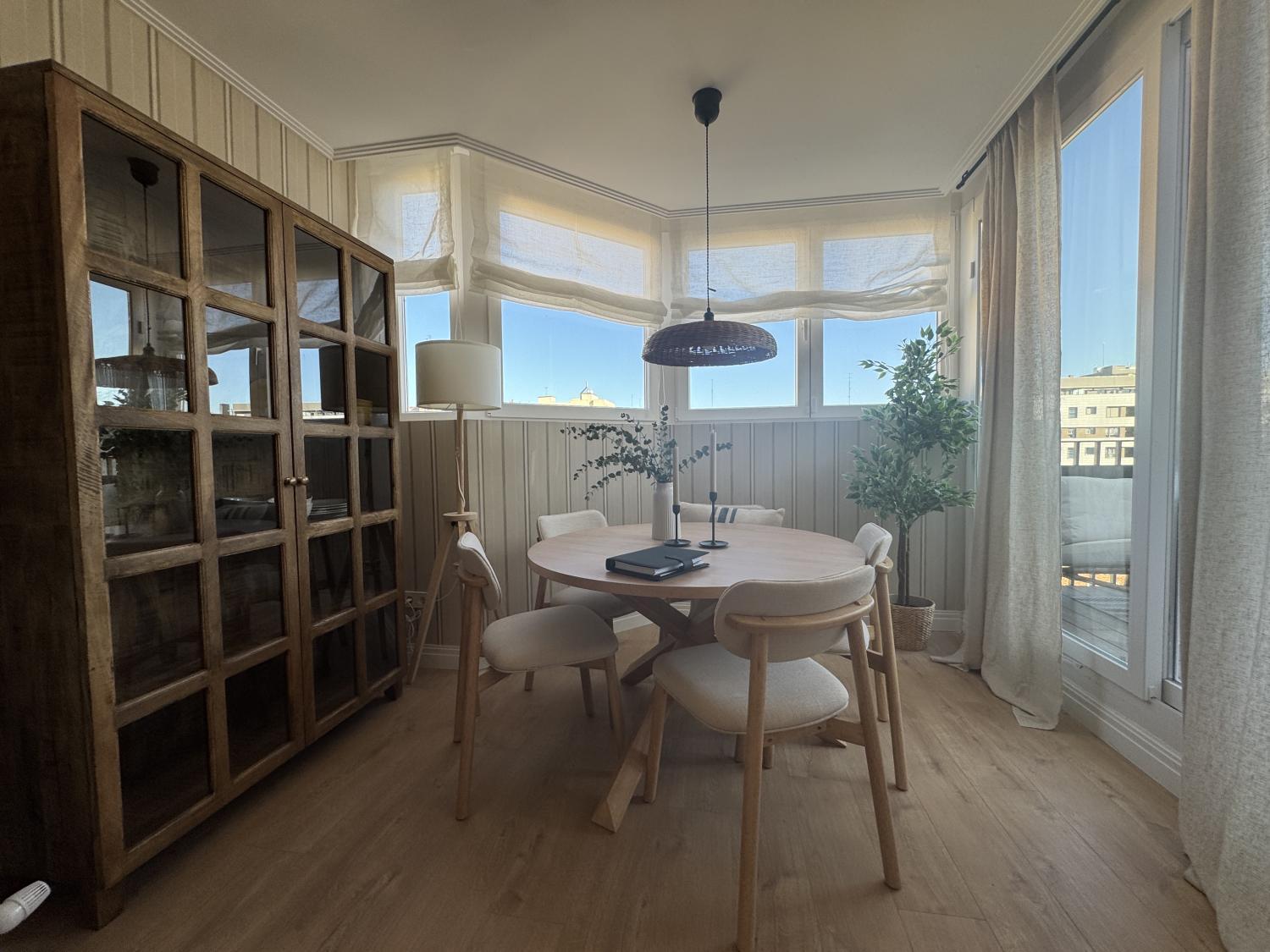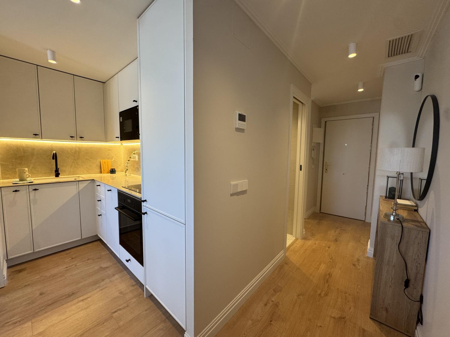 Precioso ático con maravillosa reforma de diseño a estrenar, súper luminoso, tranquilo y muy acogedor. La reforma se ha realizado aprovechando al máximo los espacios, consiguiendo una perfecta distribución. Se entrega completamente amueblada y equipada, con mobiliario, electrodomésticos y materiales de primera calidad, muy bien equipada de armarios. Se distribuye en: amplio salón comedor con cocina abierta y salida a una fantástica y espaciosa terraza de 8 m2 con fantásticas vistas, habitación principal con baño en suite y segunda habitación también de buen tamaño, con baño en pasillo, que también puede utilizarse para invitados. Calefacción y agua caliente individuales. Aire acondicionado por conductos en toda la casa. Alarma instalada Ventanas motorizadas con vidrios dobles de gran anchura y máxima calidad, totalmente aislantes del ruido y temperatura. Suelos de madera natural de roble en toda la casa, excepto cerámicos en los baños. Muy bien situada en zona con los mejores servicios, colegios, hospitales, y perfectamente comunicada, tanto mediante transporte público como privado y con rápido acceso a la M30. La finca cuenta con portero físico Comunidad: 80 € IBI: 280 €