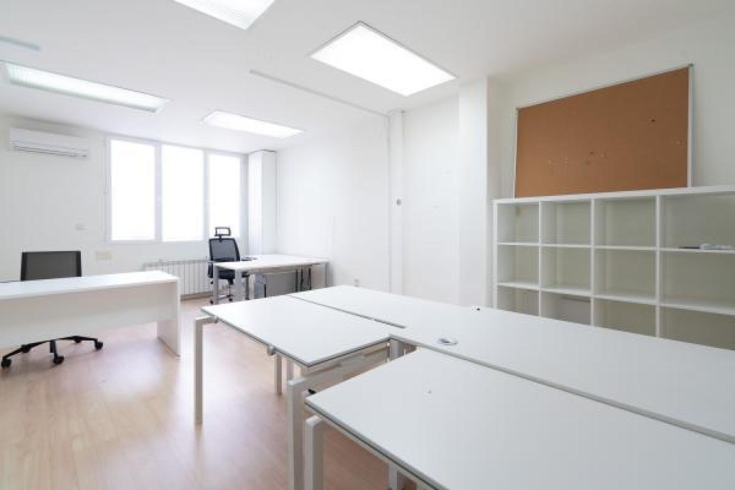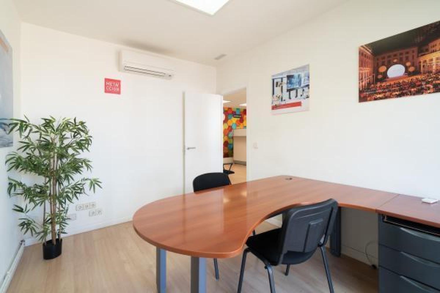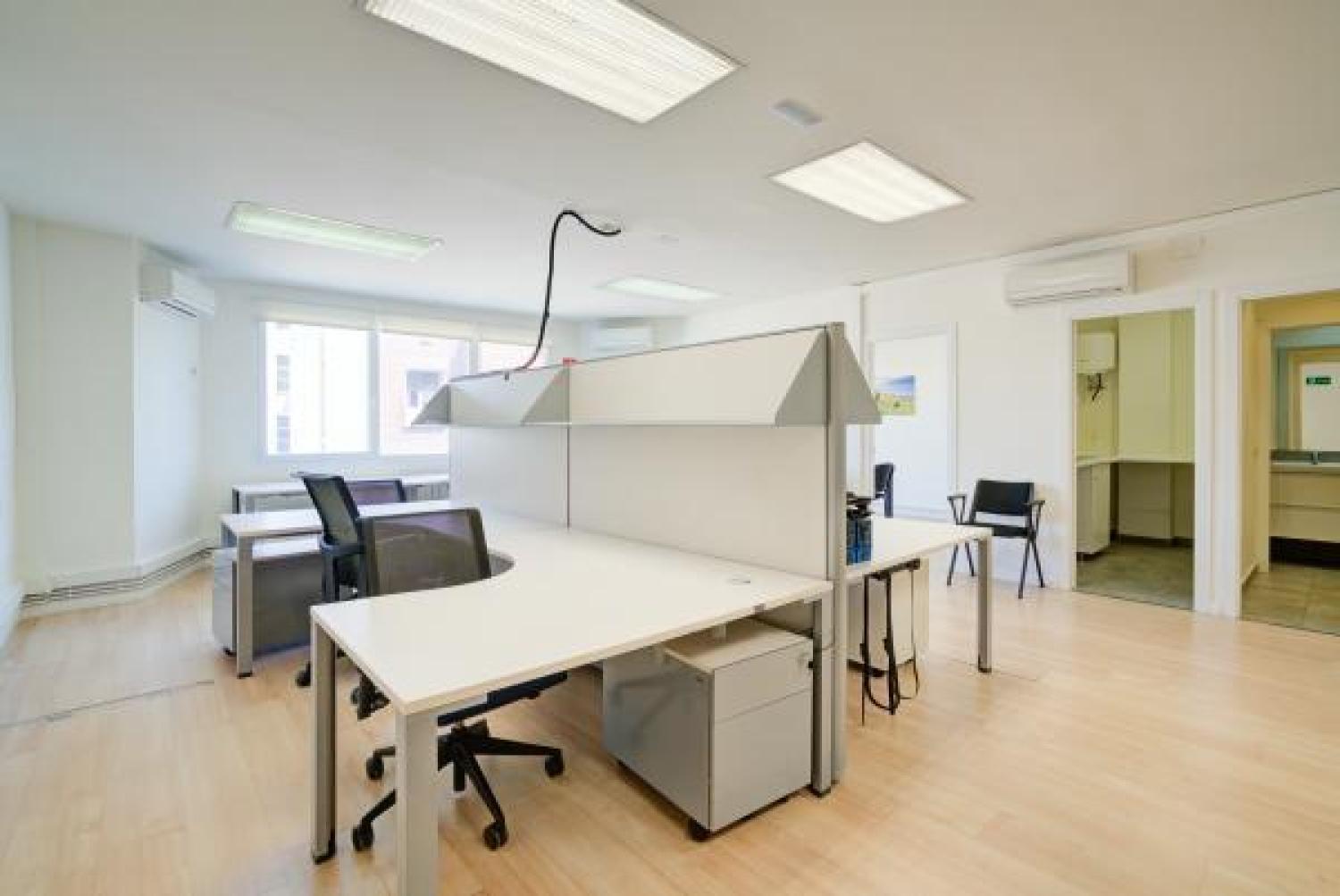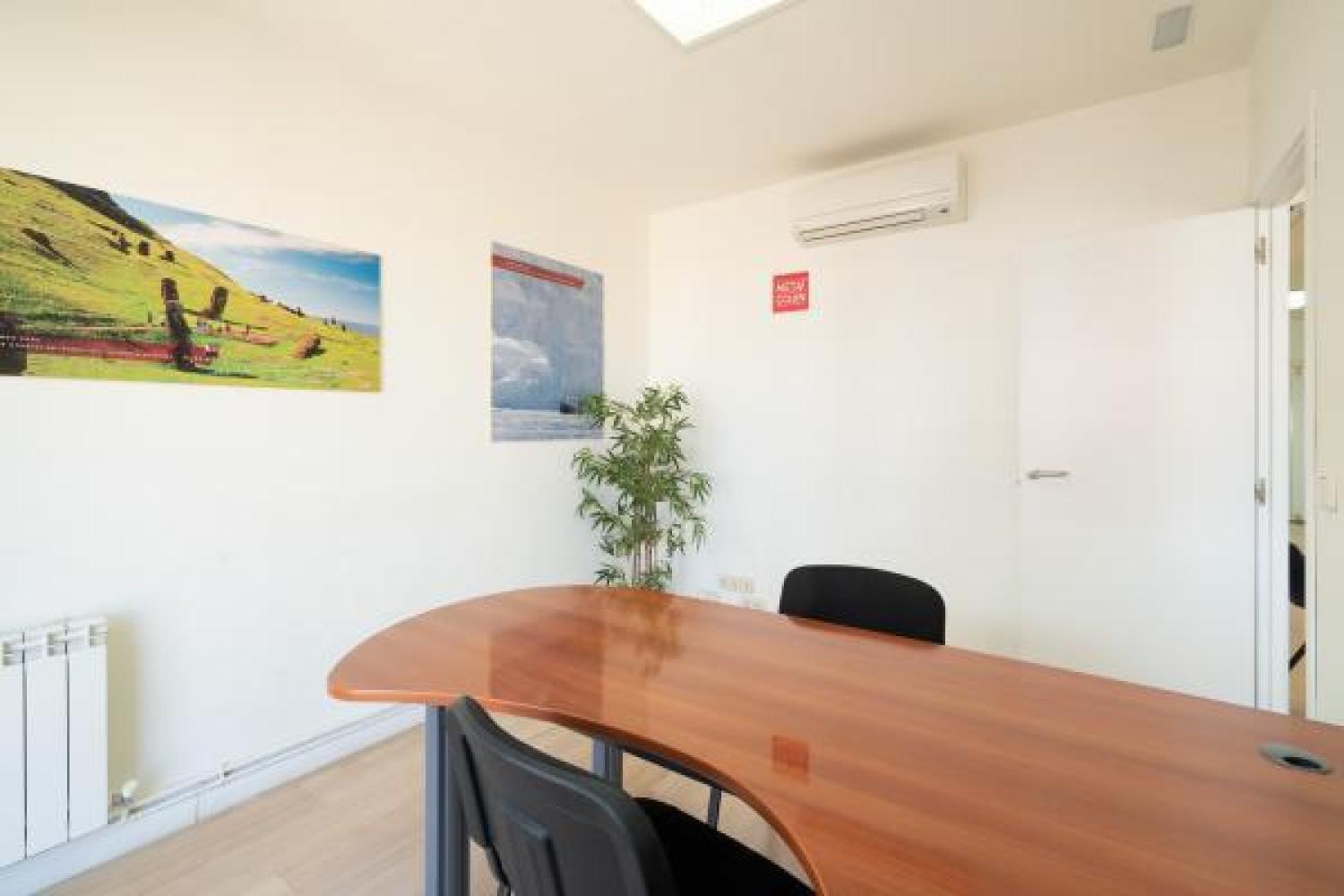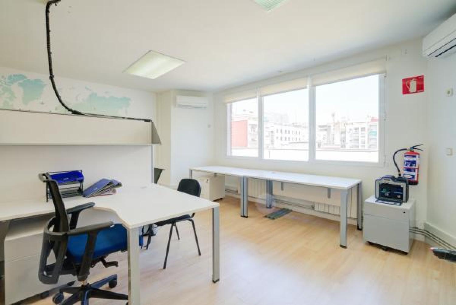 Agradable oficina en alquiler, en edificio moderno de oficinas, cuidado y bien conservado. Su superficie se divide en un amplio y luminoso espacio de trabajo en el que ahora hay 7 puestos, pero podrían añadirse más. Además cuenta con 3 despachos, uno de ellos exterior y con salida a una pequeña terracita. Dos aseos y un pequeño office. Aire acondicionado en todas las estancias, agua caliente con termo y calefacción por gas. Buen estado de conservación. Estupenda ubicación con fácil conexión mediante transporte público y rápido acceso a la A2 y M-30.