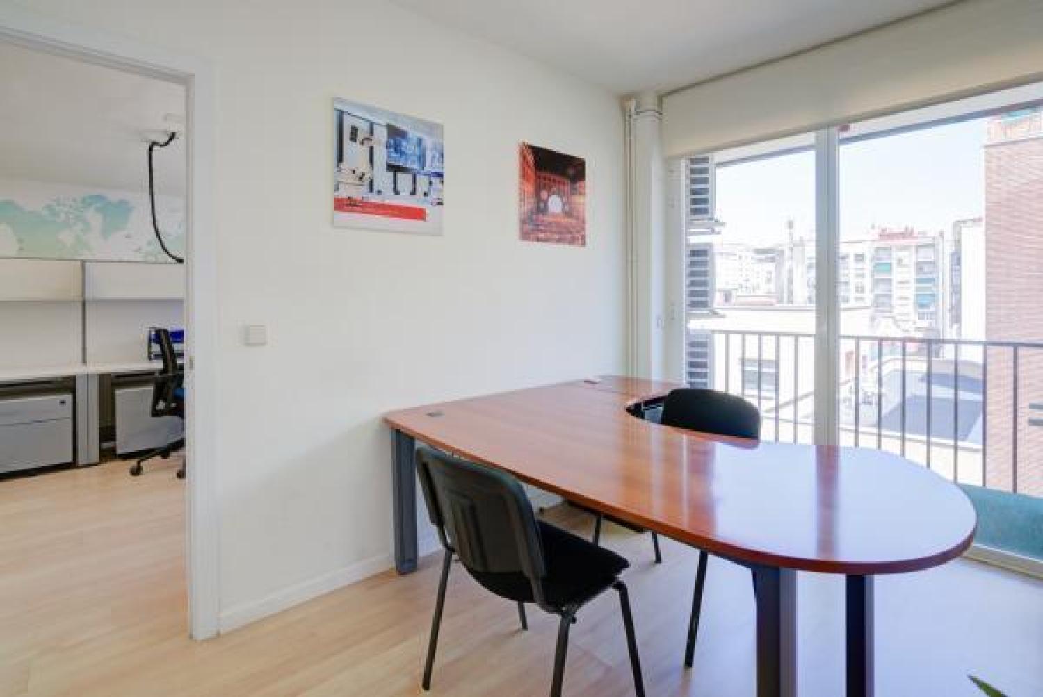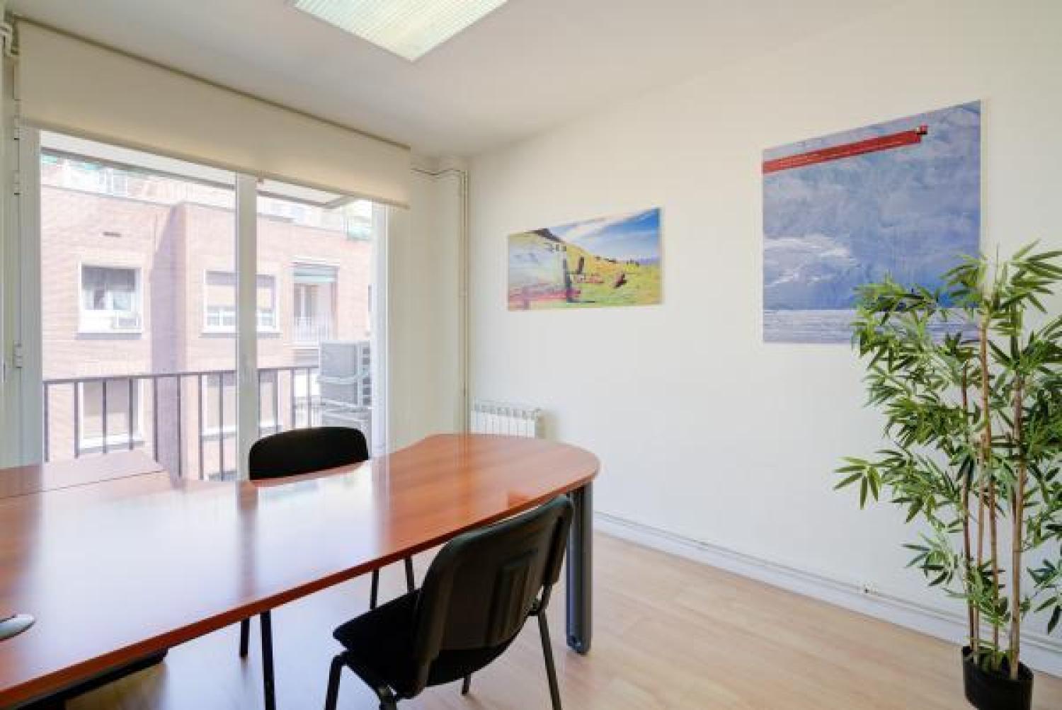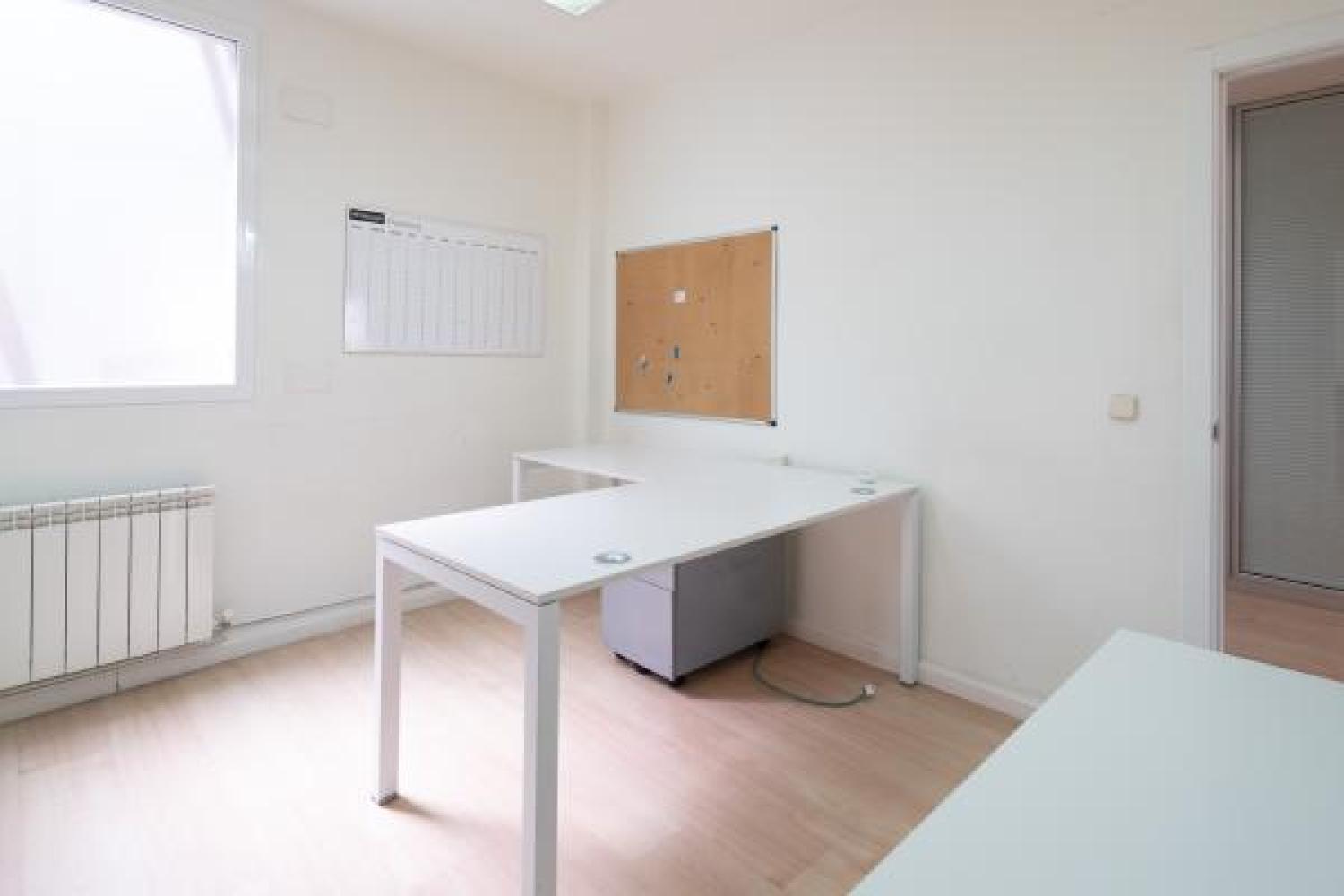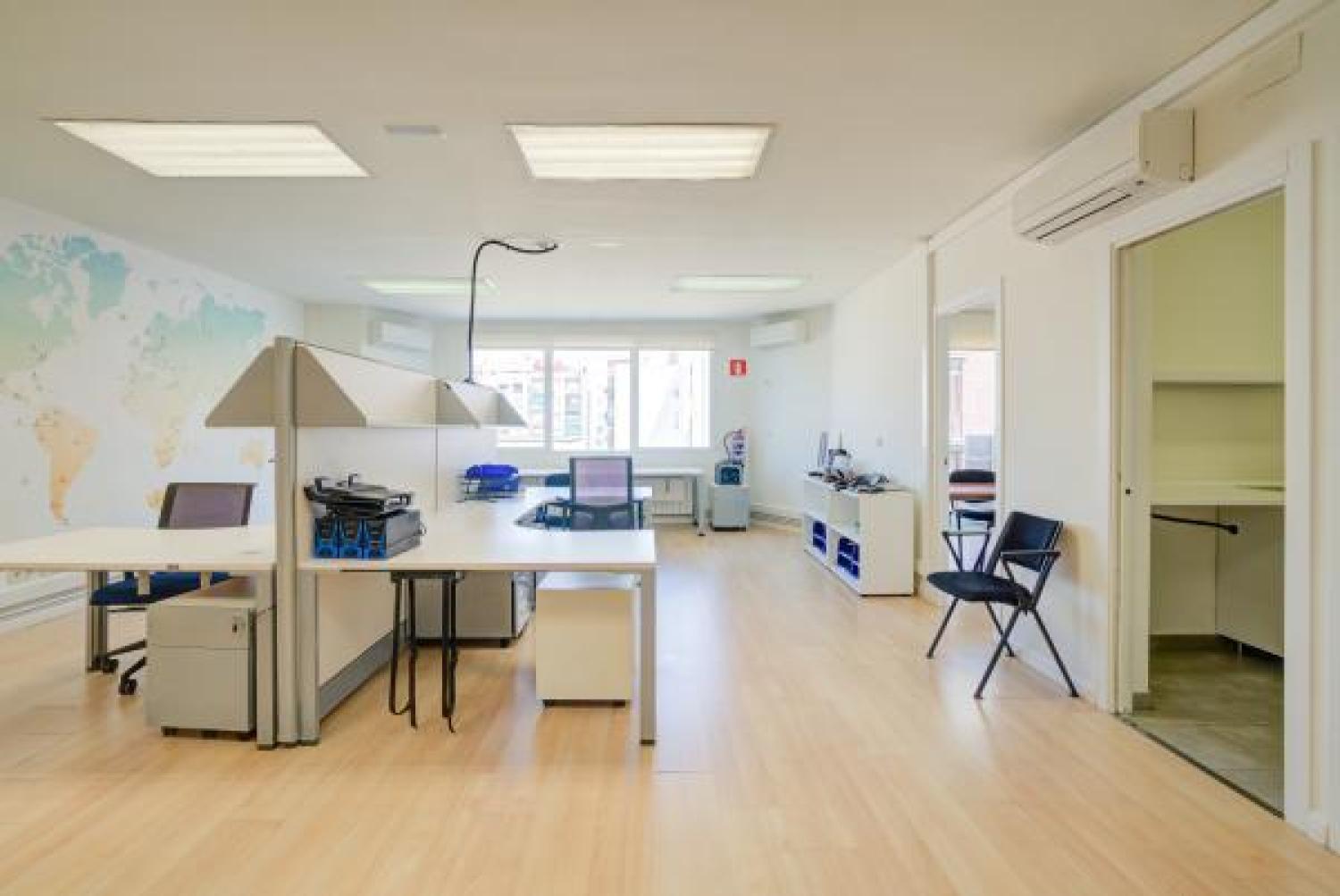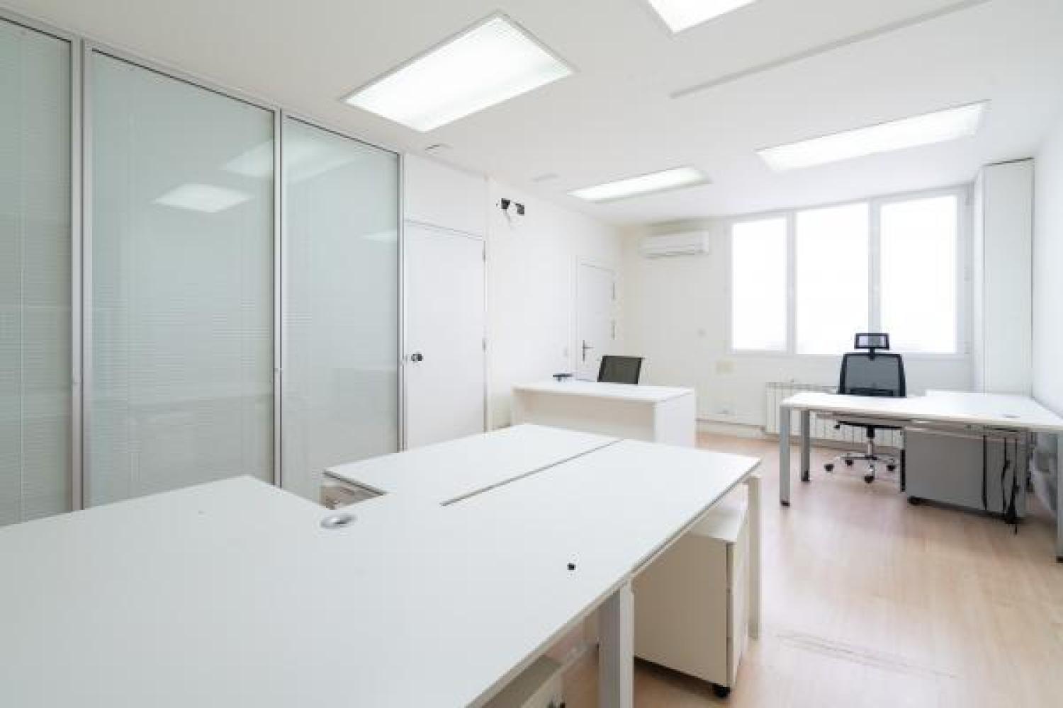 Agradable oficina en alquiler, en edificio moderno de oficinas, cuidado y bien conservado. Su superficie se divide en un amplio y luminoso espacio de trabajo en el que ahora hay 7 puestos, pero podrían añadirse más. Además cuenta con 3 despachos, uno de ellos exterior y con salida a una pequeña terracita. Dos aseos y un pequeño office. Aire acondicionado en todas las estancias, agua caliente con termo y calefacción por gas. Buen estado de conservación. Estupenda ubicación con fácil conexión mediante transporte público y rápido acceso a la A2 y M-30.