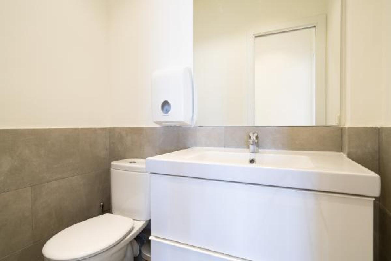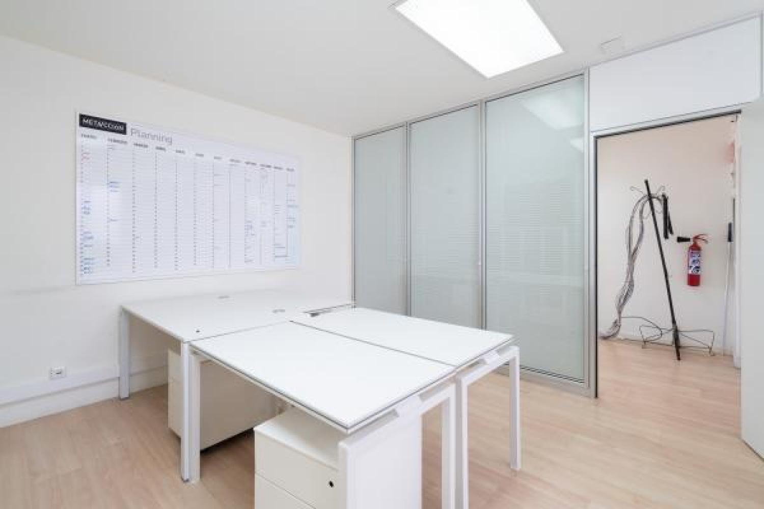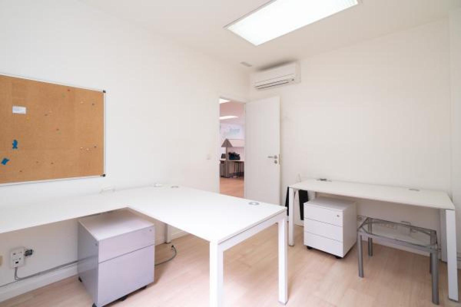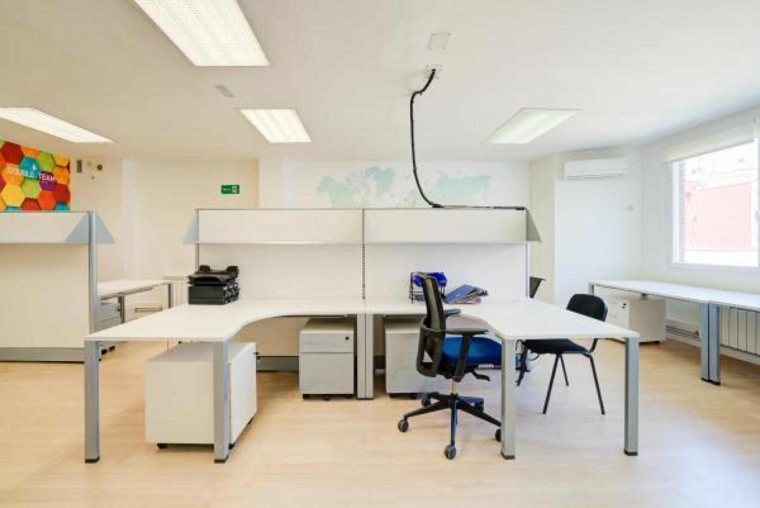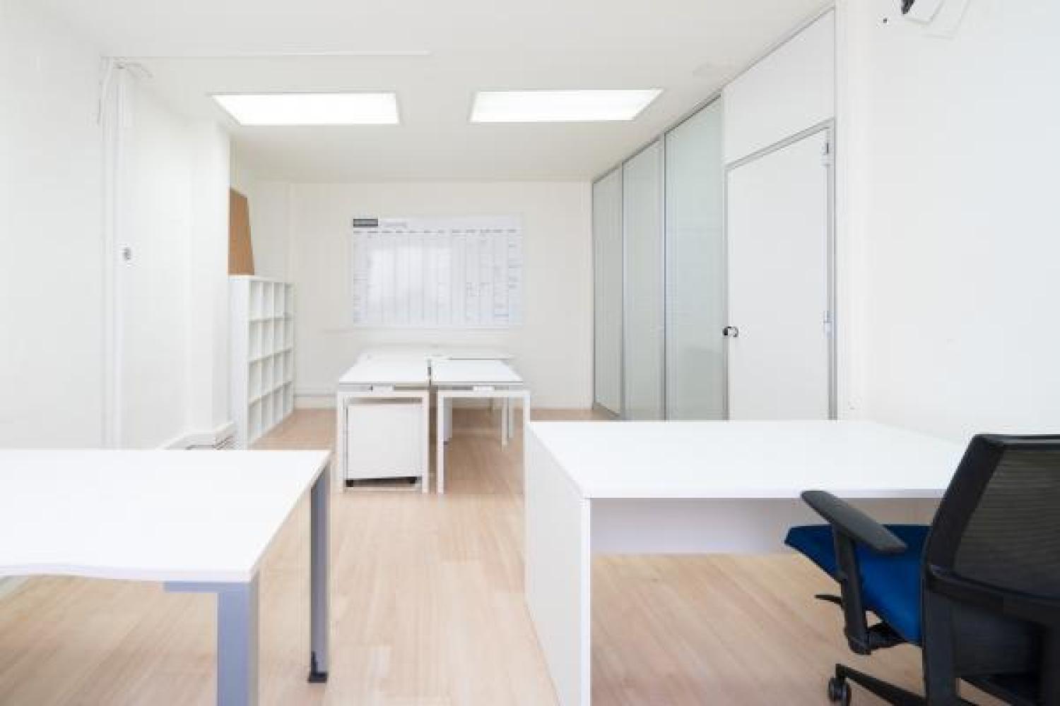 Agradable oficina en alquiler, en edificio moderno de oficinas, cuidado y bien conservado. Su superficie se divide en un amplio y luminoso espacio de trabajo en el que ahora hay 7 puestos, pero podrían añadirse más. Además cuenta con 3 despachos, uno de ellos exterior y con salida a una pequeña terracita. Dos aseos y un pequeño office. Aire acondicionado en todas las estancias, agua caliente con termo y calefacción por gas. Buen estado de conservación. Estupenda ubicación con fácil conexión mediante transporte público y rápido acceso a la A2 y M-30.