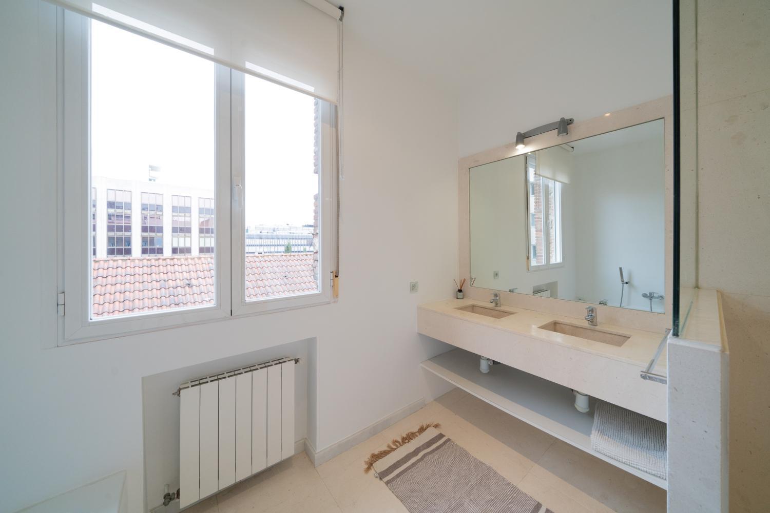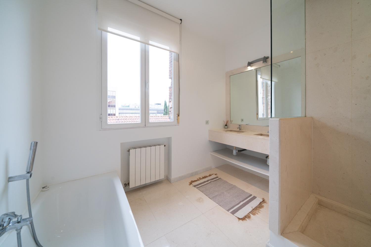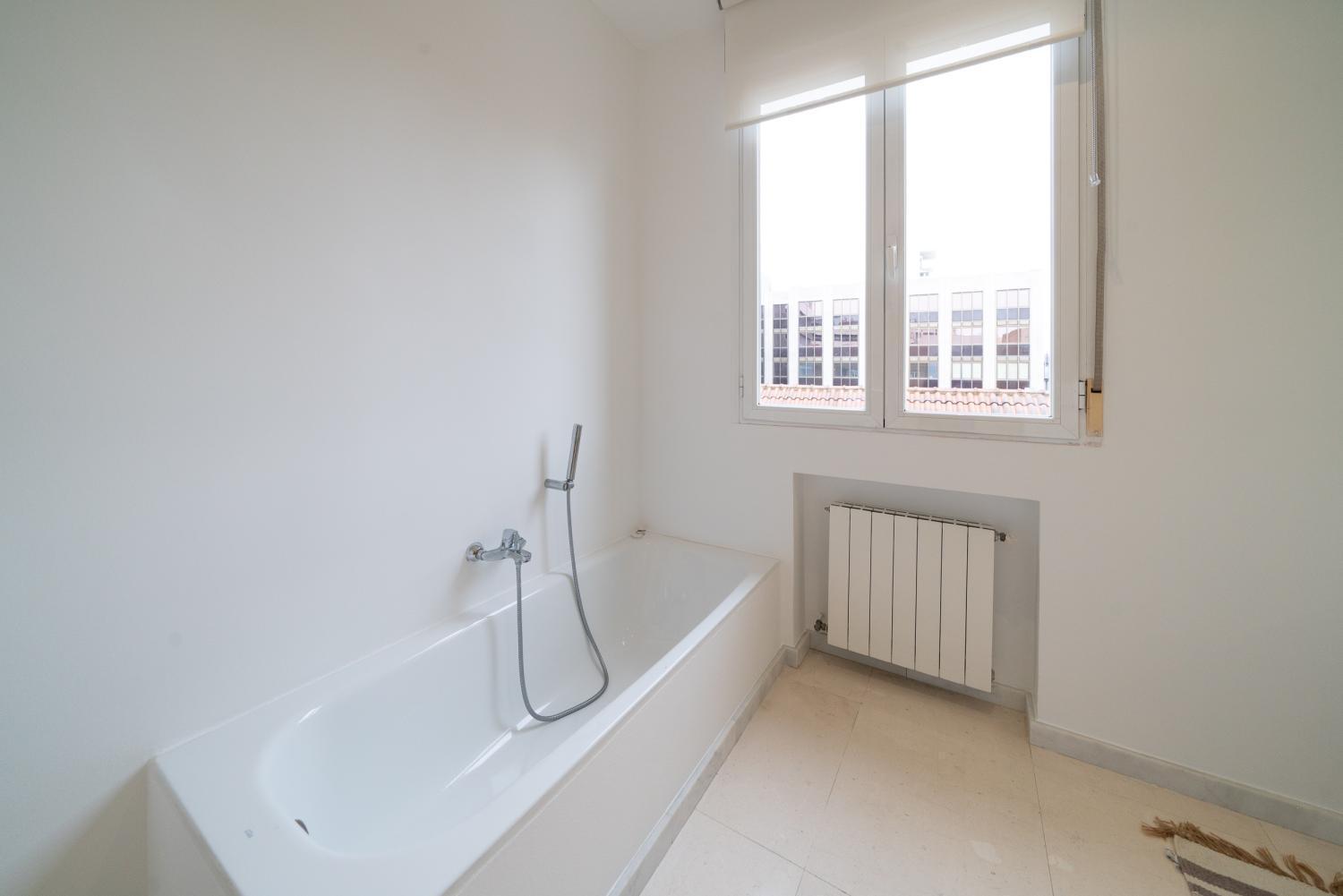 Piso reformado en la calle Zurbano dando a un fantástico patio de manzana. Todos los espacios tienen grandes ventanas y mucha luz. Amplio salón comedor, estupendo dormitorio principal en suite con baño de gran tamaño . Pequeño cuarto para lavadora y caldera. Aire acondicionado, portero en la finca.