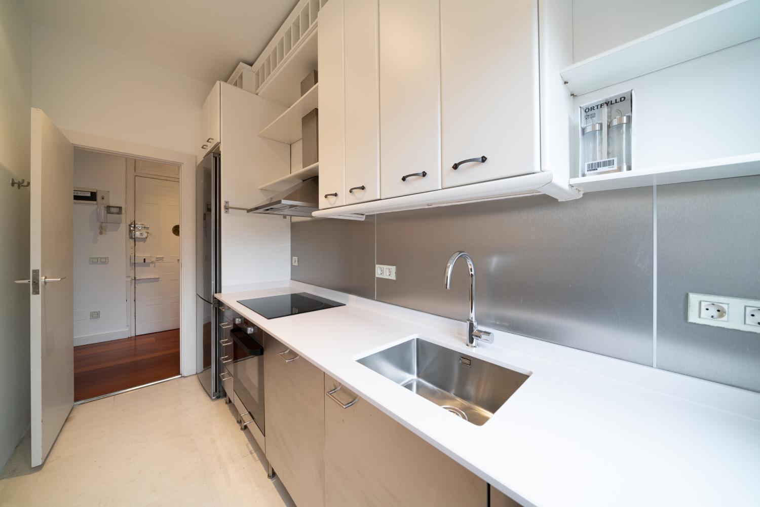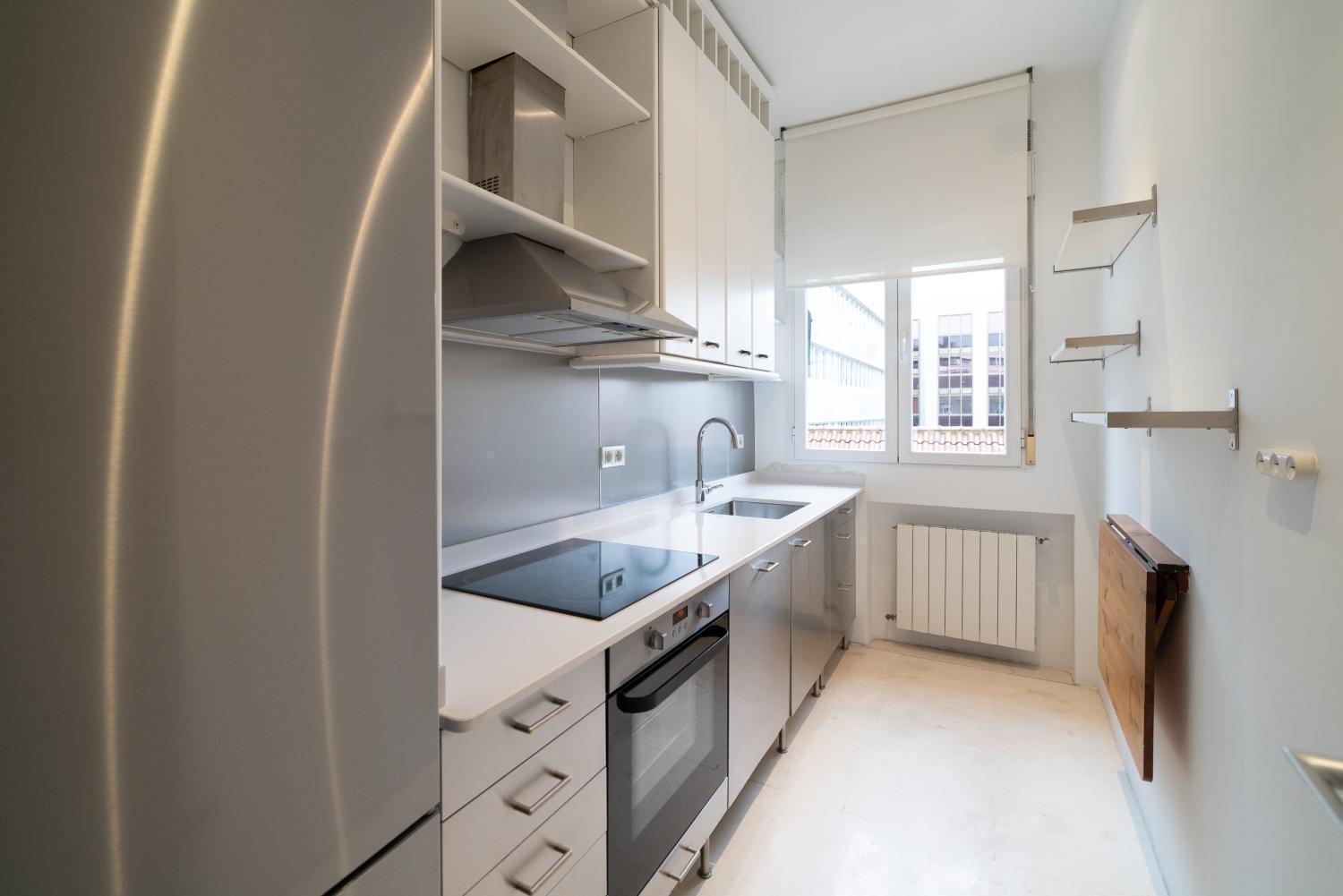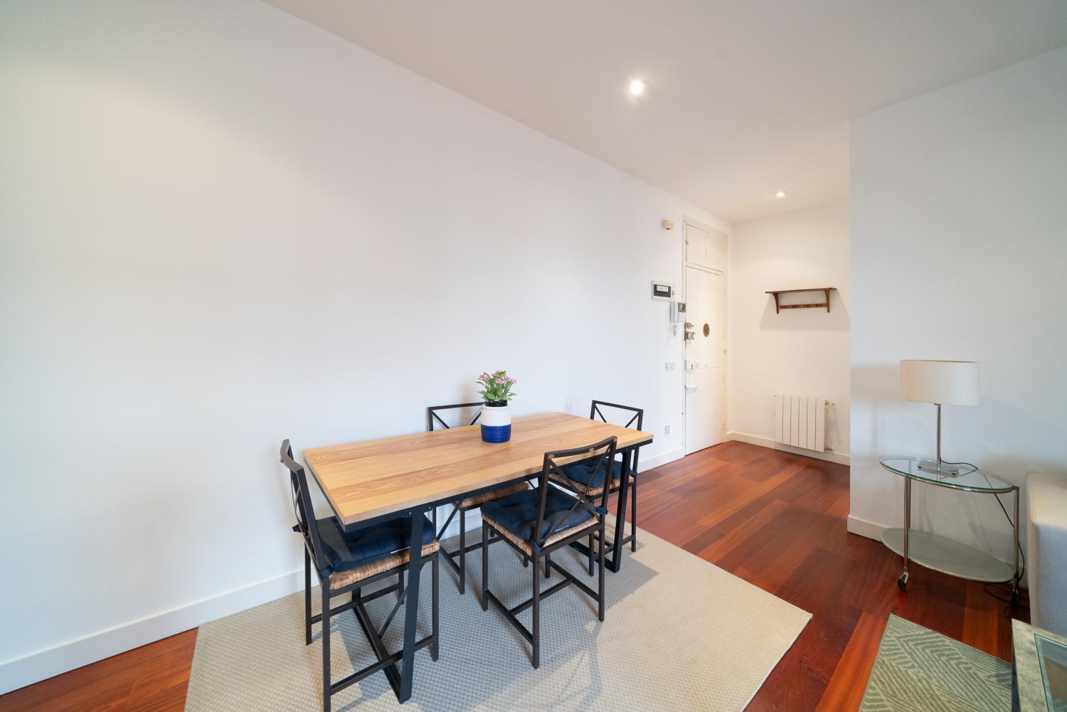 Piso reformado en la calle Zurbano dando a un fantástico patio de manzana. Todos los espacios tienen grandes ventanas y mucha luz. Amplio salón comedor, estupendo dormitorio principal en suite con baño de gran tamaño . Pequeño cuarto para lavadora y caldera. Aire acondicionado, portero en la finca.