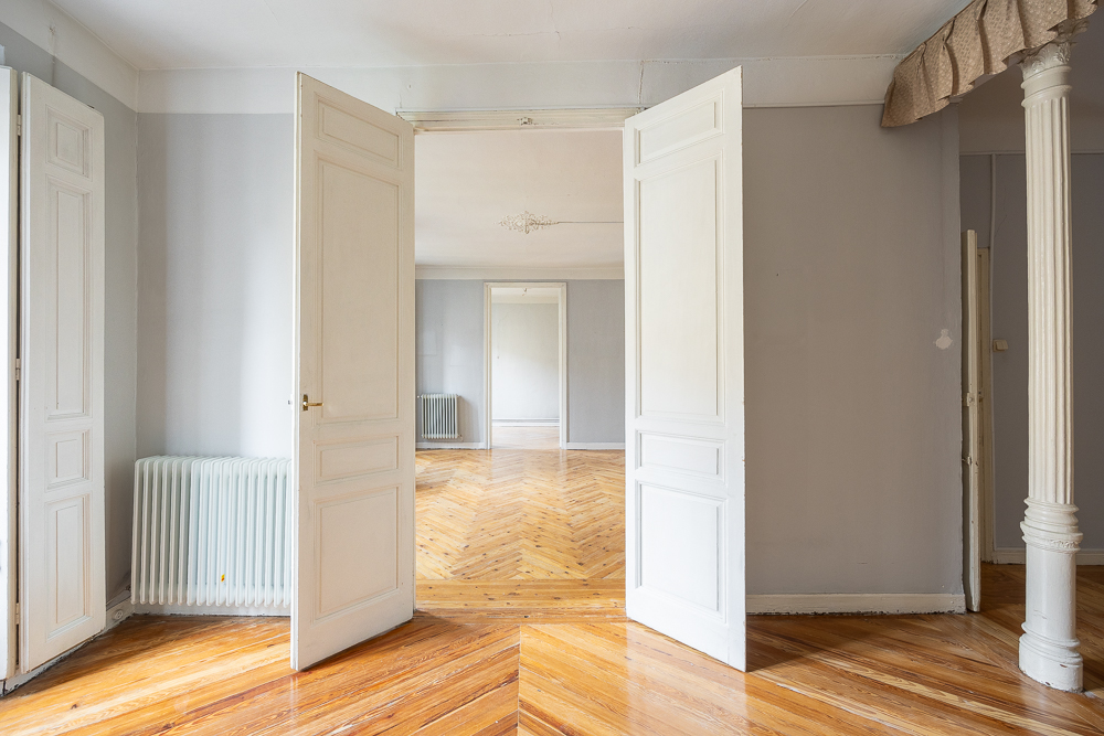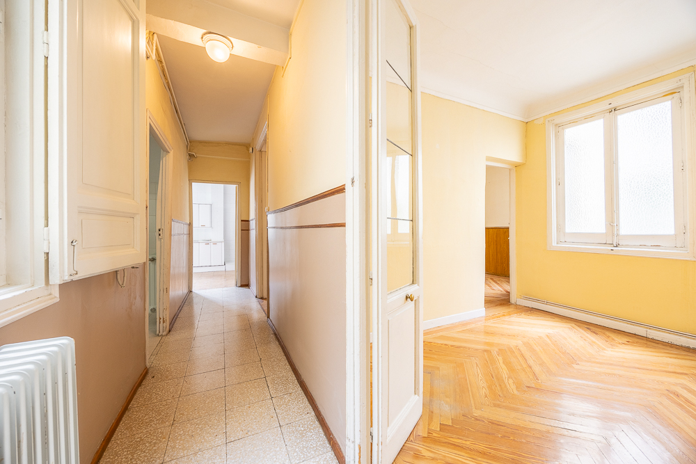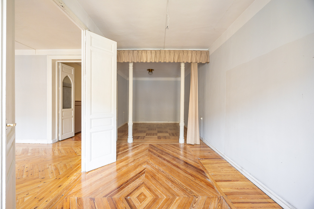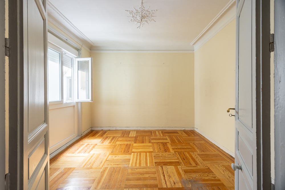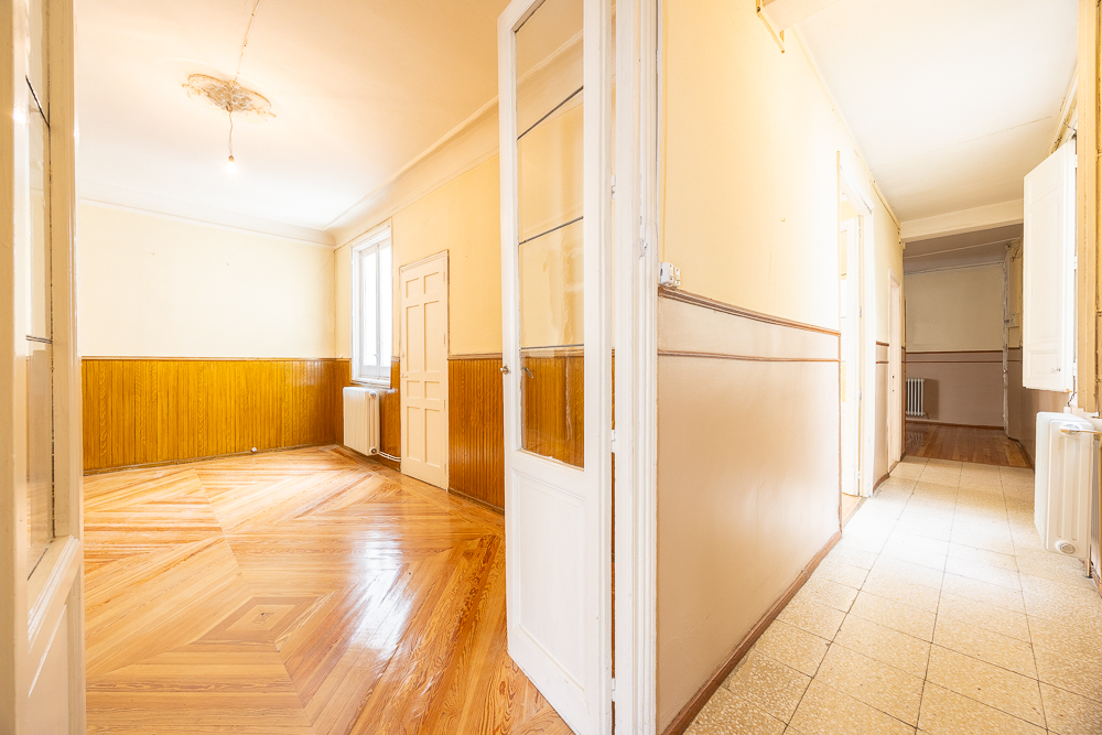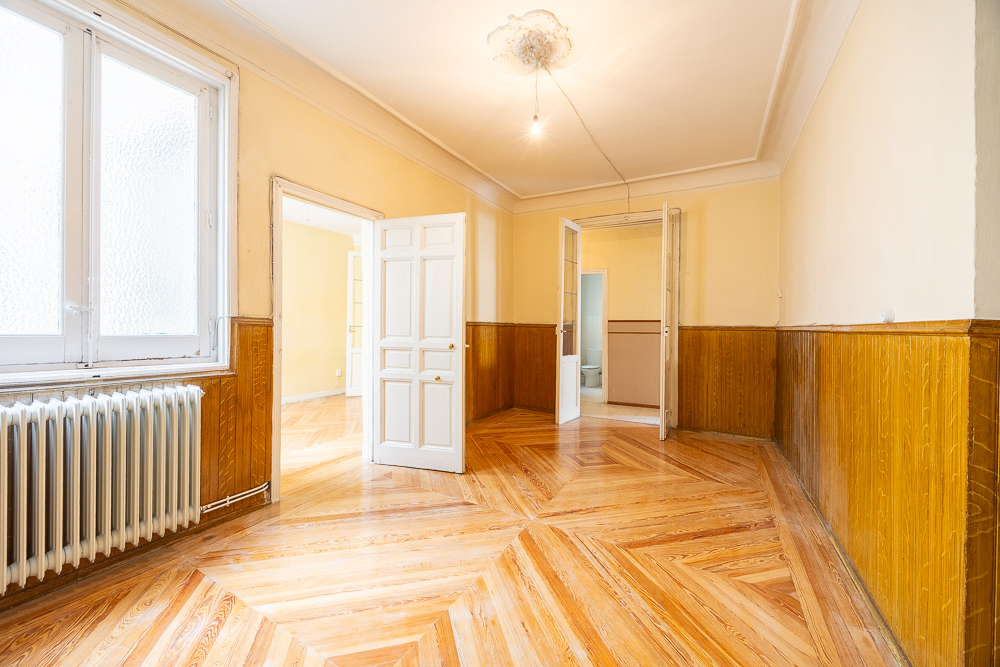 Spectacular home in a classic building with four balconies overlooking the street, located in the sought-after Justicia neighbourhood. Completely renovated to a high standard. Situated in one of Madrid’s most iconic and vibrant districts. The property features an elegant entrance hall with guest cloakroom and built-in wardrobes, leading into a spacious living-dining area with three balconies facing the street. Adjacent to the living room, a stylish exterior-facing kitchen is enclosed by a glass-panelled partition. Separate laundry area and staff quarters with bedroom and bathroom. The impressive principal suite includes a large walk-in wardrobe and en-suite bathroom. Two further double bedrooms, each with en-suite bathrooms. Original herringbone wood flooring, high ceilings, and abundant natural light throughout. Individual heating and air conditioning. Classic period building with concierge service. IBI (annual property tax): €1,651 Community fees: €267/month
