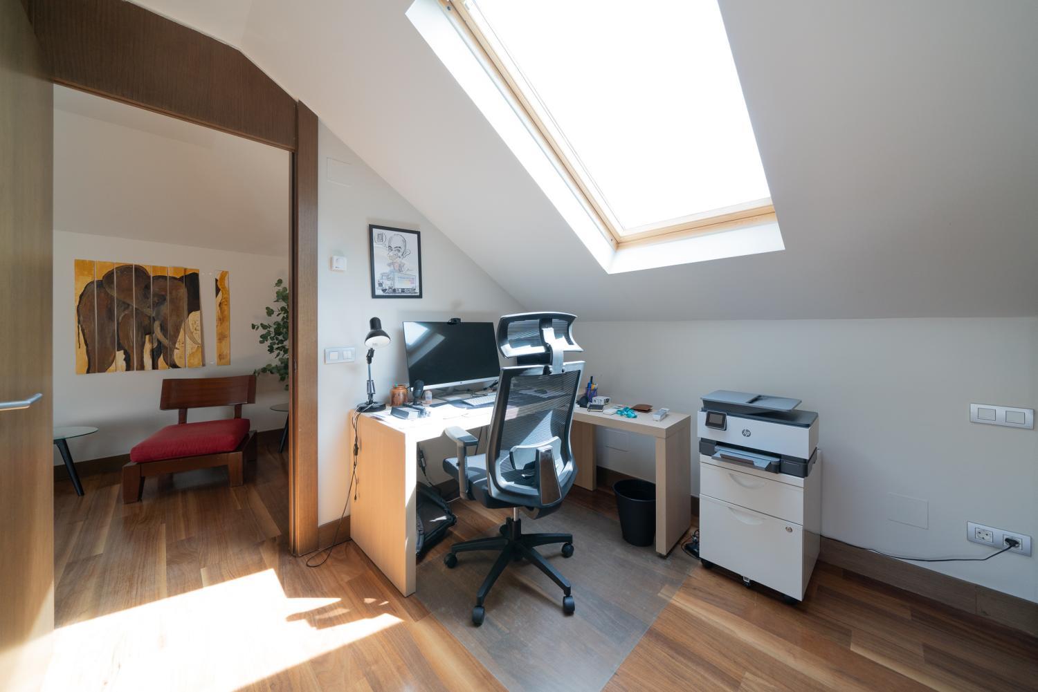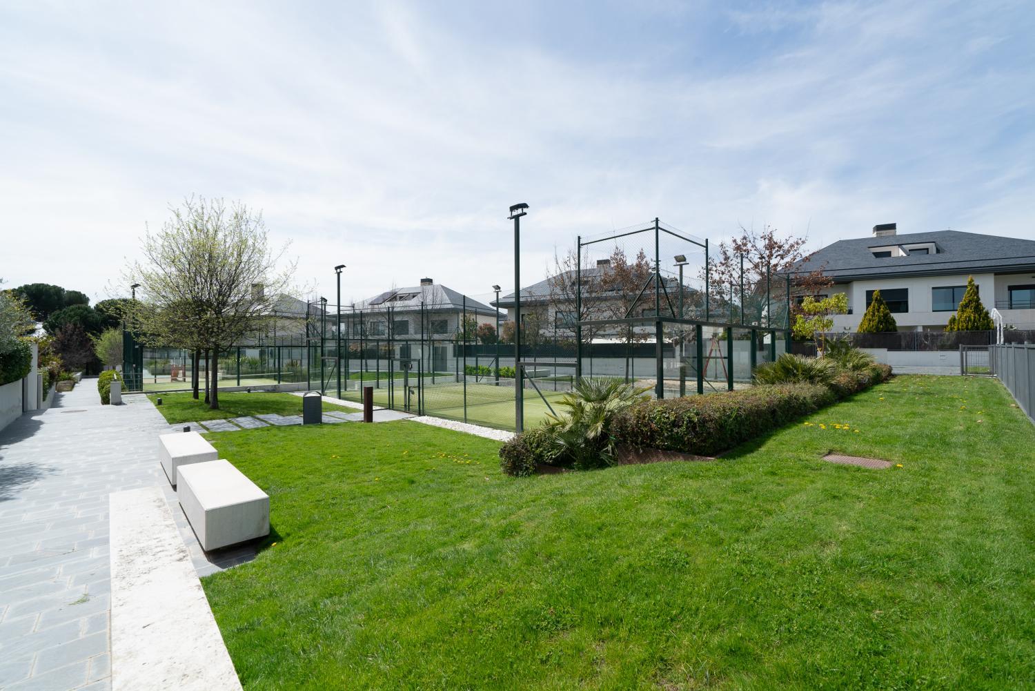Magnífico chalet pareado, en la mejor parcela de la urbanización, con vistas espectaculares al monte de las encinas y estupendas zonas comunes. Se compone de 4 plantas con dos grandes terrazas (delantera y trasera) y un bonito jardín. P. Sótano: amplio garaje para 3 coches, cuarto de instalaciones, caldera, despensa, bodega, distribuidor, dormitorio, cuarto de baño, lavadero/cuarto de plancha y trastero. P. Baja: cocina totalmente equipada con electrodomésticos NEFF y mucho almacenamiento. Amplio salón comedor, aseo de cortesía, vestíbulo y porche. P. Primera: 3 dormitorios, el principal en suite con vestidor y dos terrazas. P. Ático: dormitorio, cuarto de baño, cuarto de estar y terraza con preciosas vistas. Seguridad/Vigilancia 24h con dos porteros físicos. Dos piscinas, dos pistas de padel, zona de juegos infantil, gimnasio y salón social. Autobus en la puerta y localización privilegiada cerca de colegios, comercios, restaurantes, hospital, gasolinera, etc...