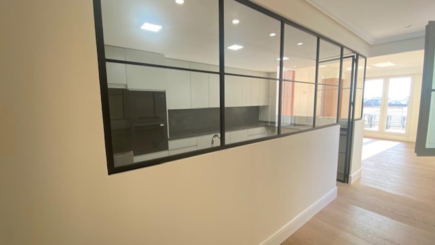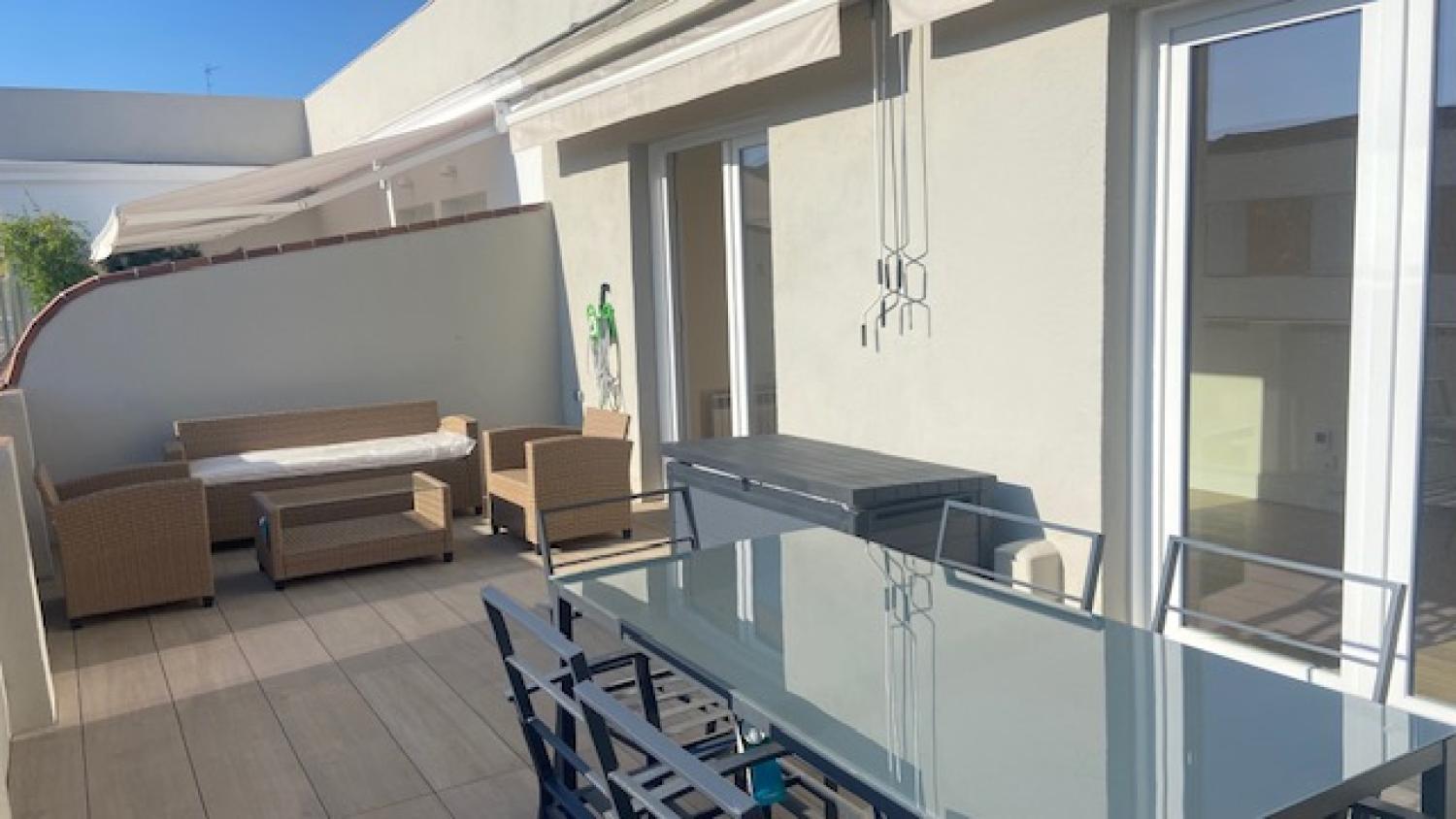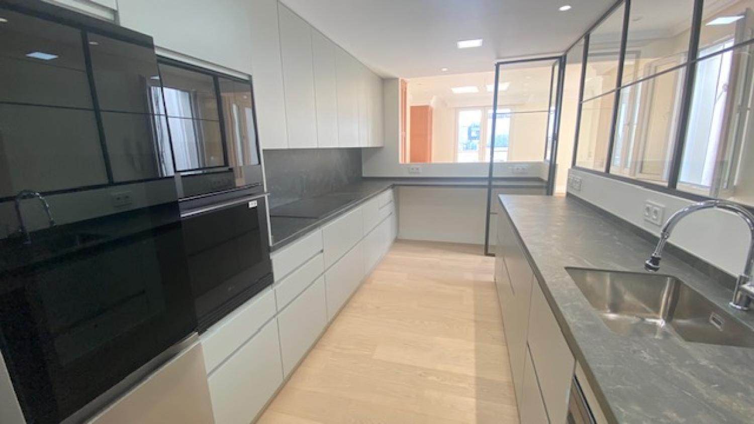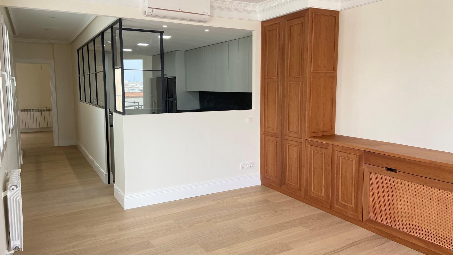 Ático exterior e impecable de 131 m² construidos (123 m² útiles), ubicado en edificio representativo de 1935. Dispone de dos habitaciones, dos baños completos y una amplia terraza. Cocina equipada con zona de lavandería separada. Aire acondicionado y ventiladores en todas las estancias. Conserjería en el edificio. Vivienda sin amueblar, salvo mobiliario en terraza. Plaza de garaje opcional por 300 €/mes.