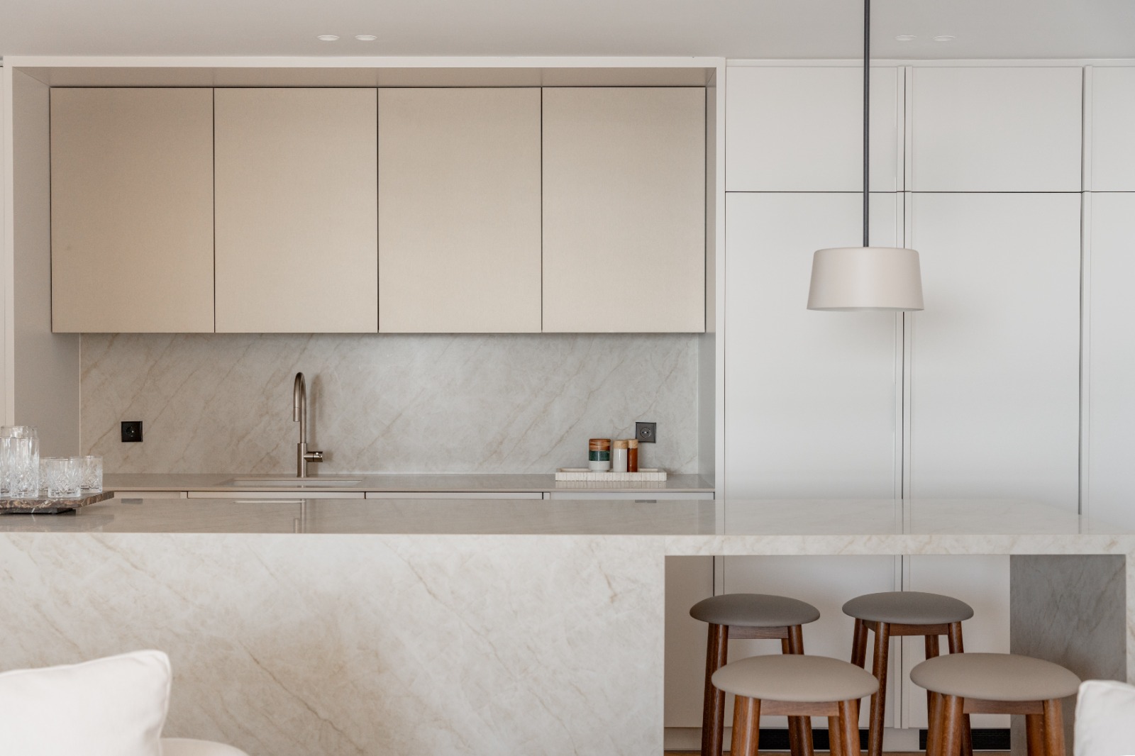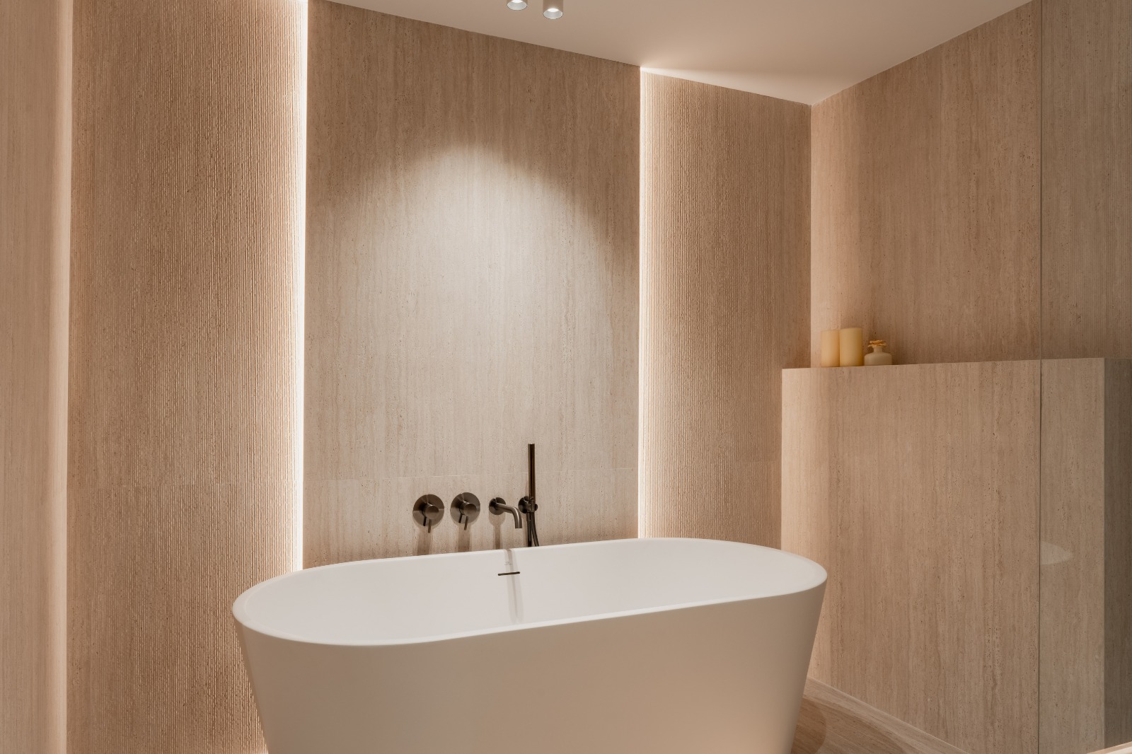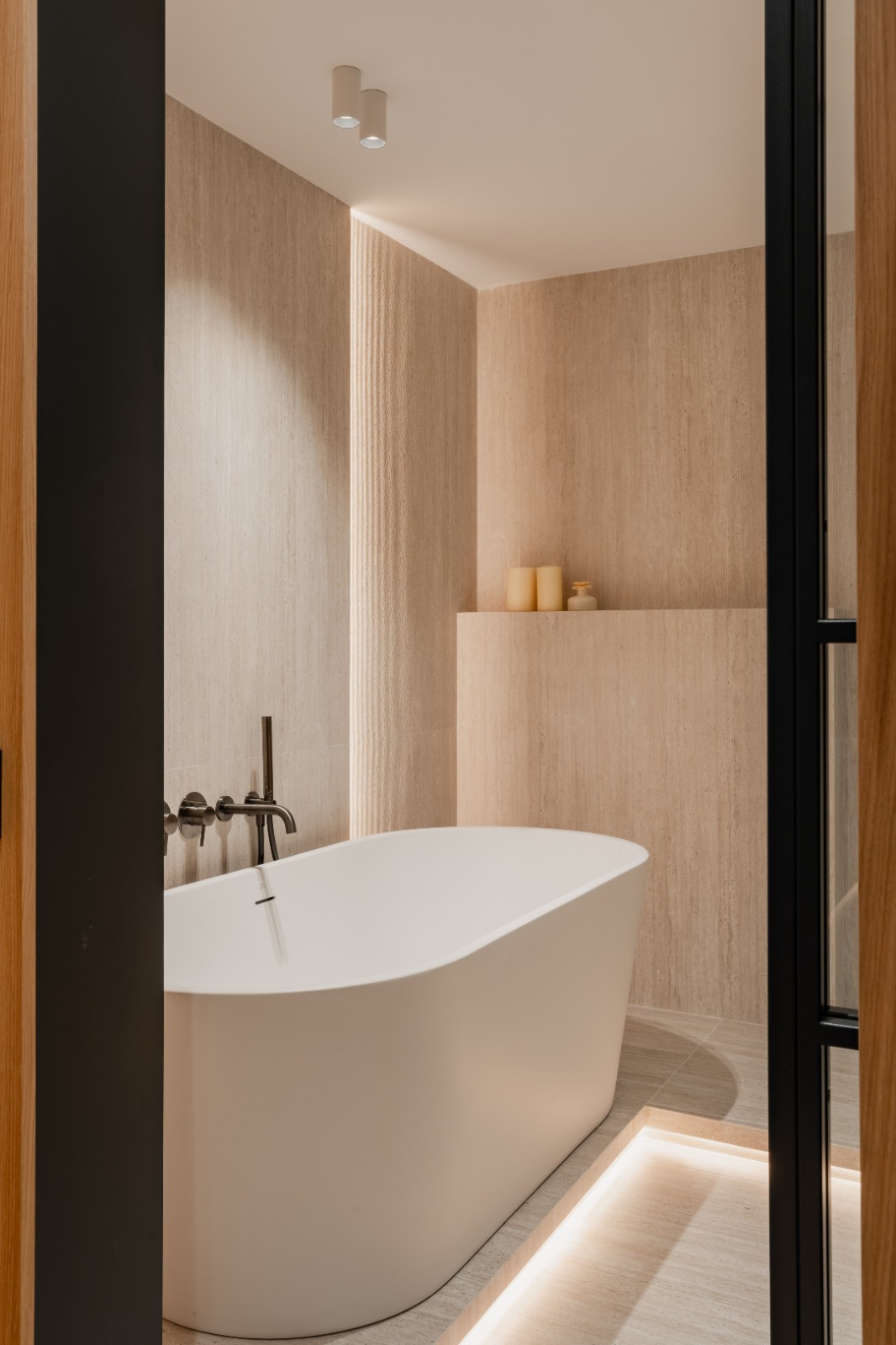 The private quarters include three en-suite bedrooms, each thoughtfully designed for maximum comfort and privacy. The primary suite stands out with direct access to the terrace, an expansive walk-in dressing room, and a beautifully appointed bathroom. A fourth full bathroom serves as a stylish guest cloakroom or additional support facility.