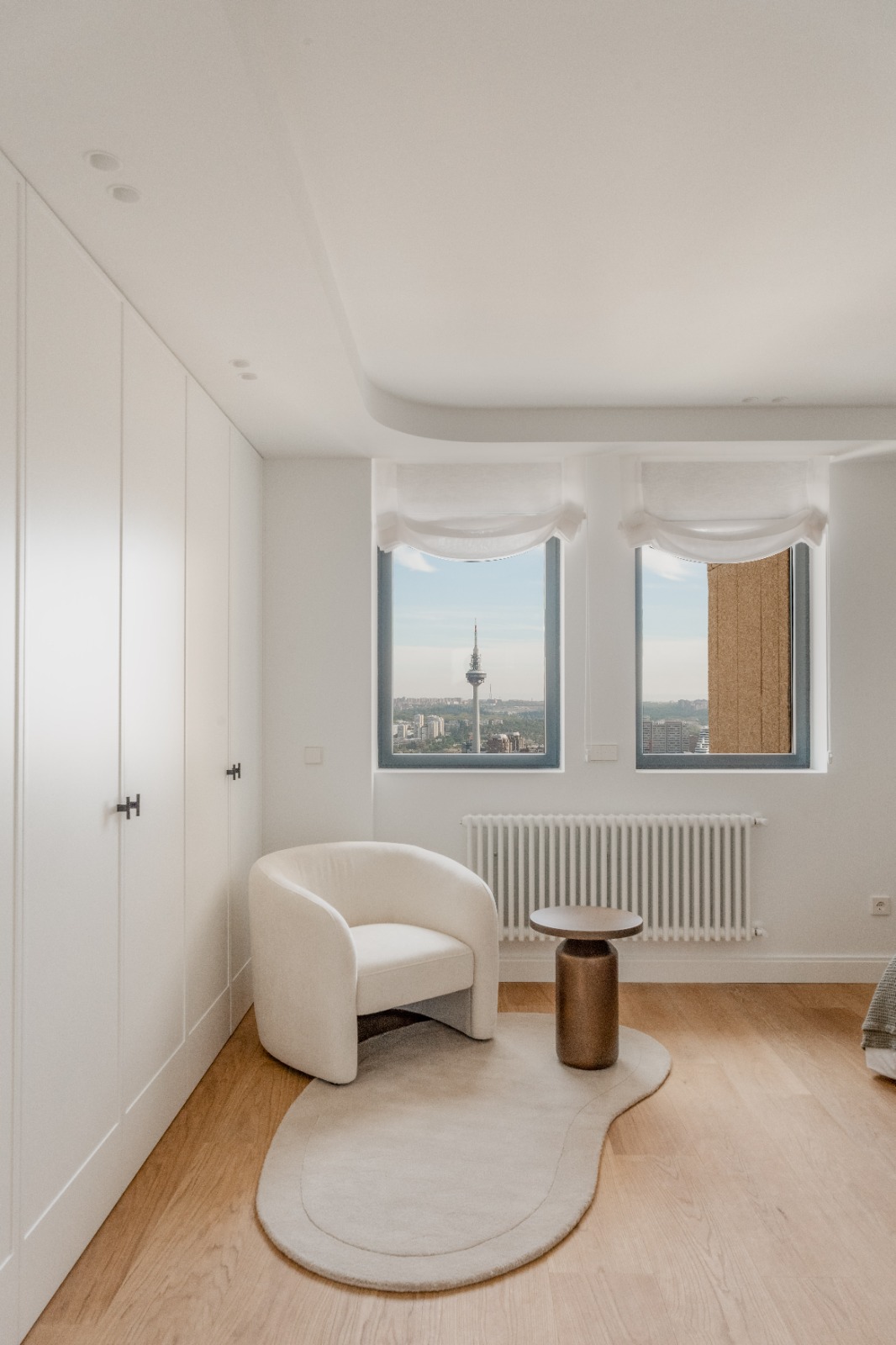 Occupying the 27th floor of the iconic Torre de Valencia — a landmark of modern Madrid architecture designed by renowned architect Javier Carvajal and completed in 1973 — this spectacular residence offers a rare opportunity to enjoy elevated living in the most exclusive corner of the Salamanca district. Rising prominently against the city skyline, directly facing El Retiro Park, the tower’s emblematic silhouette underlines the unique prestige of this address.