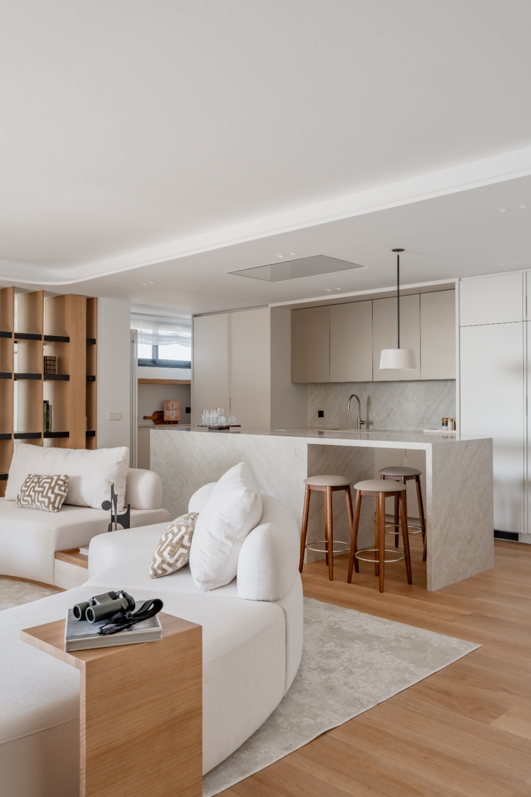 Recently refurbished and furnished to the highest standards, the apartment is presented in immaculate, move-in-ready condition. With only one residence per floor, privacy is paramount. A refined entrance hall leads effortlessly into the home, serving as a central axis between the living and sleeping areas.
