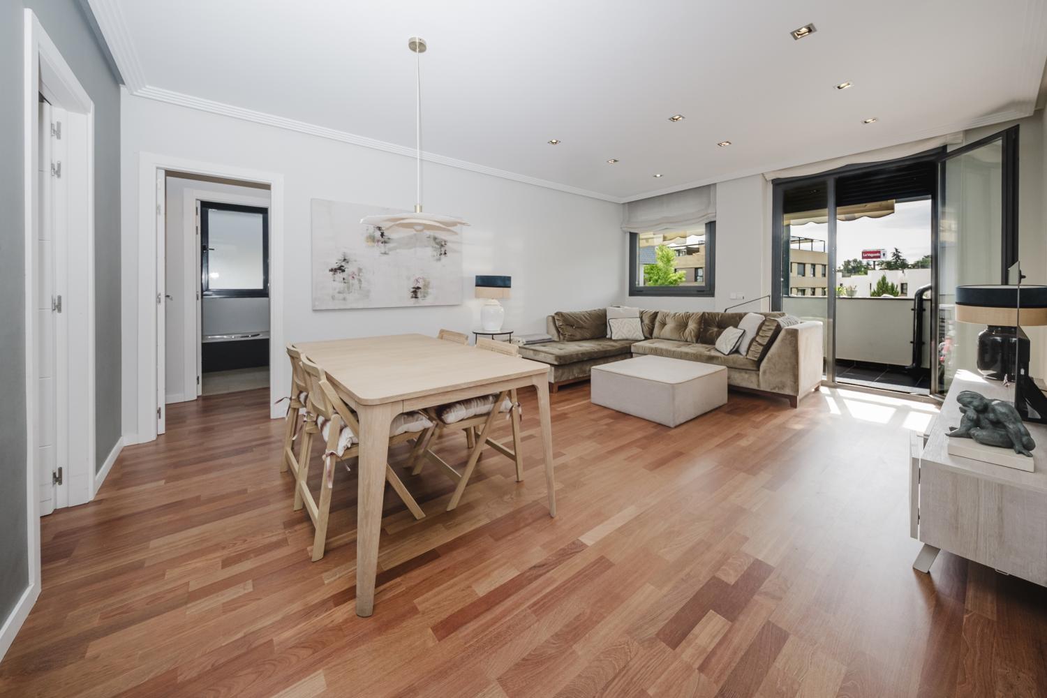 Piso con excelente distribución en una de las mejores zonas de Valdemarín, a tan solo dos minutos a pie de todos los servicios: restaurantes, supermercados, farmacia, zonas verdes y colegios. Perfectamente comunicado con el centro de Madrid y alrededores. La vivienda destaca por su luminosidad y orientación sur, que aporta claridad y alegría a todas las estancias. Se distribuye en: - Hall de entrada. - Cocina con dormitorio y baño de servicio. - Amplio salón-comedor muy luminoso, con salida directa a una terraza orientada al sureste. - Dormitorio principal con baño en suite y acceso a la terraza. - Dos dormitorios adicionales de buen tamaño que comparten un baño exterior. Las zonas comunes de la urbanización incluyen piscina, gimnasio, pista de pádel y servicio de portería durante el día. En conjunto, se trata de una vivienda completa, con una ubicación privilegiada y una distribución muy funcional.