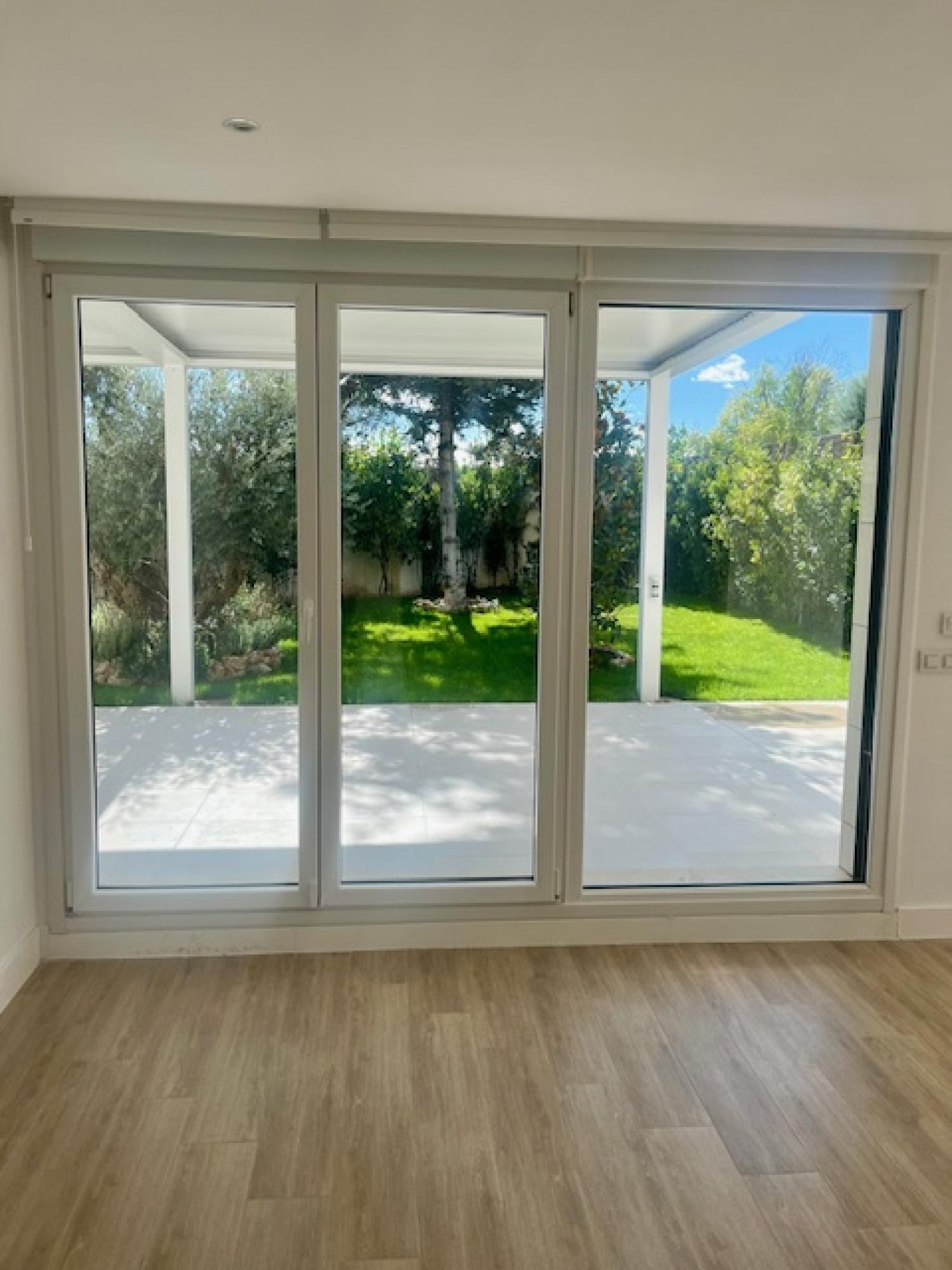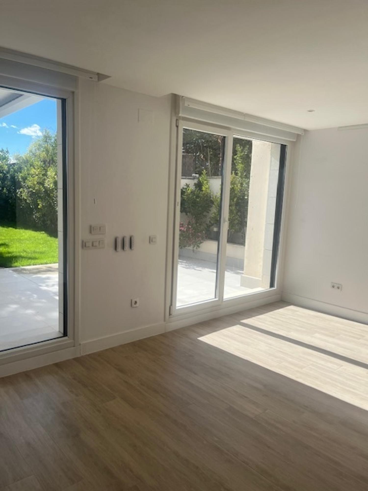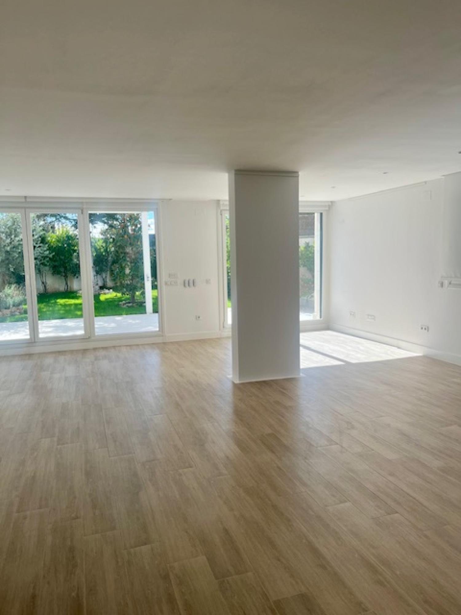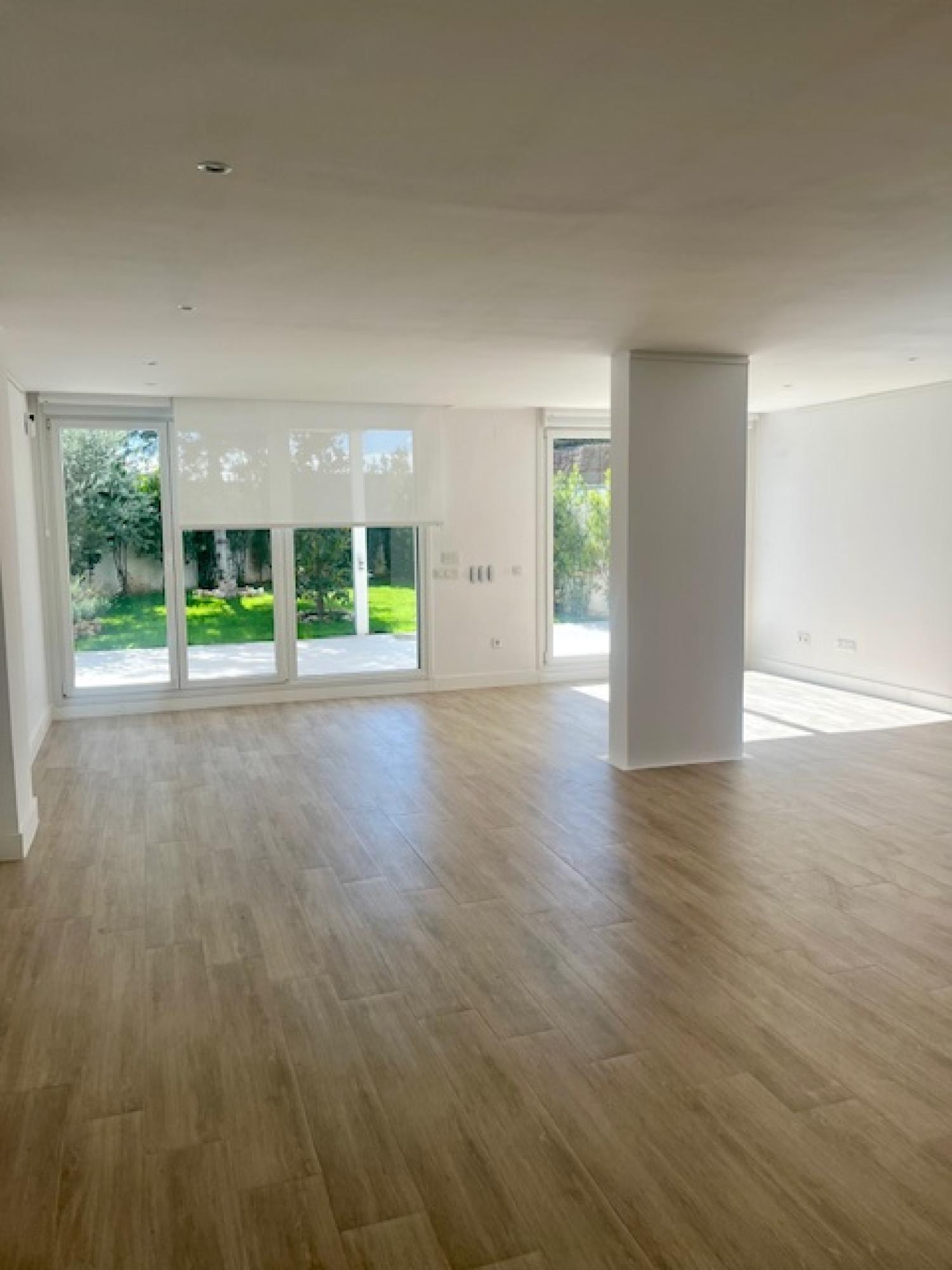 Precioso bajo con precioso jardín, a estrenar con 4 amplios dormitorios más servicio, Se distribuye: Zona de día: · Hall de entrada con aseo de invitados y armarios. · Gran salón comedor con salida al porche y jardín. · Amplia cocina equipada, con zona office, tendedero cubierto y dormitorio con baño de servicio. Zona de noche: · Sala de estar o family room que puede tener uso como dormitorio adicional. · Dos dormitorios dobles con amplios armarios. · Dos baños completos, uno de ellos con ducha y otro con bañera. · Dormitorio principal con baño en suite y vestidor. Jardín de 200m2 con zona de porche y una gran pradera verde con distintos espacios para el disfrute al aire libre. Dos plazas de garaje. Trastero Urbanización cerrada con piscina. Vivienda sostenible con sistema de calefacción por aerotermia con suelo radiante/ refrigerante que maximiza el confort térmico con el mínimo consumo energético. Excelentes calidades: carpinterías de primer nivel, suelos porcelánicos de gran formato, cocina completamente equipada.