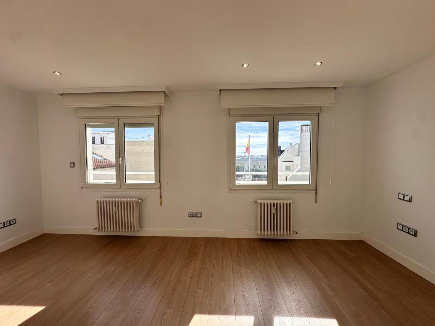 Magnífico piso completamente exterior en la mejor zona de Recoletos, en muy buen edificio con portero y garaje de acceso directo. Se accede a través de un hall de muy buen tamaño que da paso a un despacho independiente así como a un salón - comedor muy amplio. Ambos espacios tienen salida independiente sobre una maravillosa terraza principal, de 45 metros cuadrados con orientación norte y oeste. Tras el salón - comedor, se accede a la cocina, independiente,