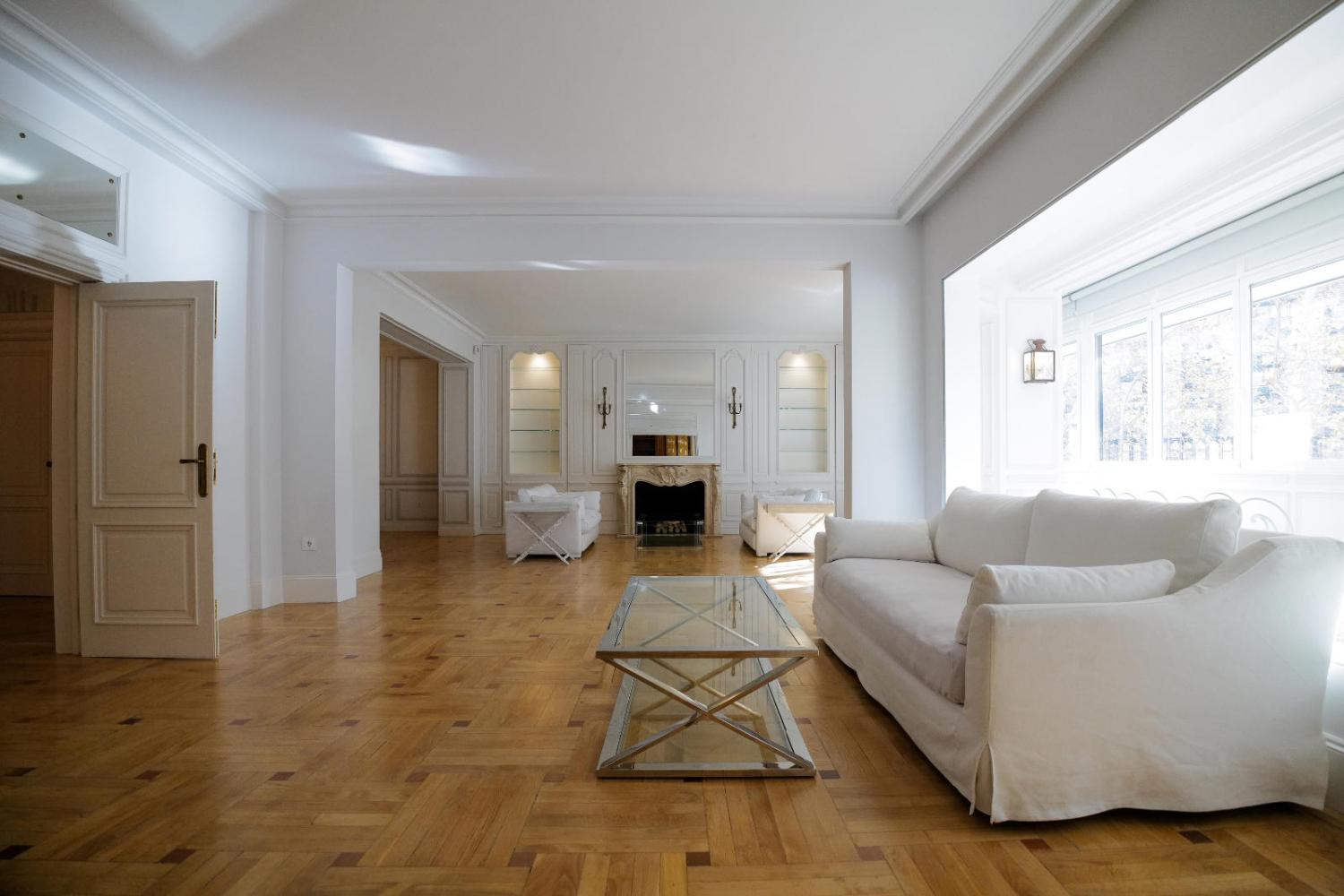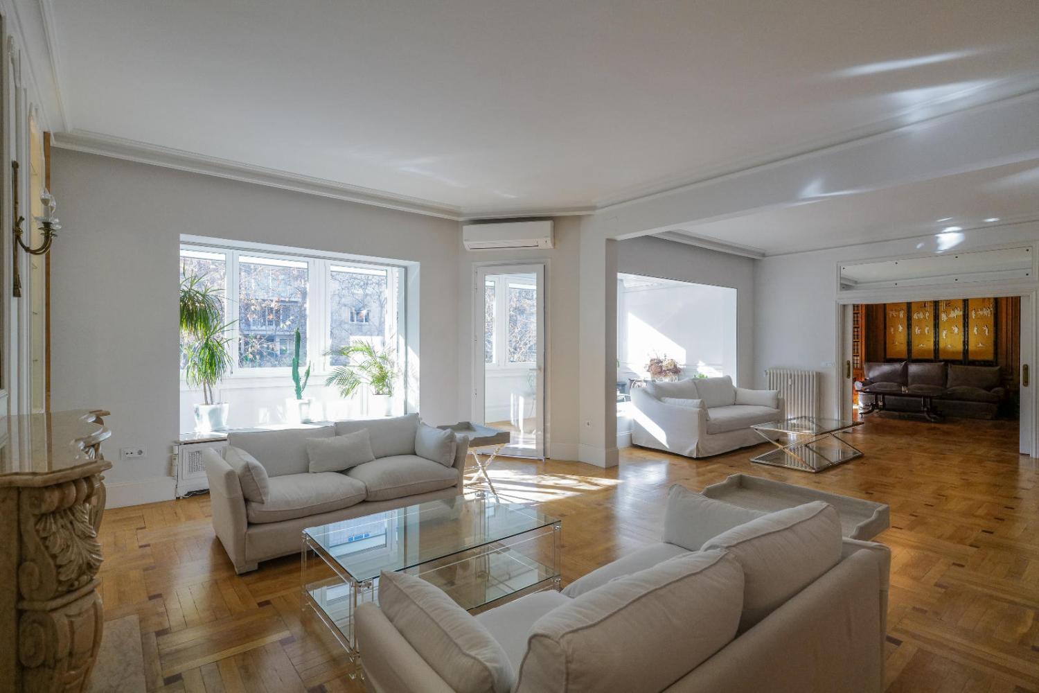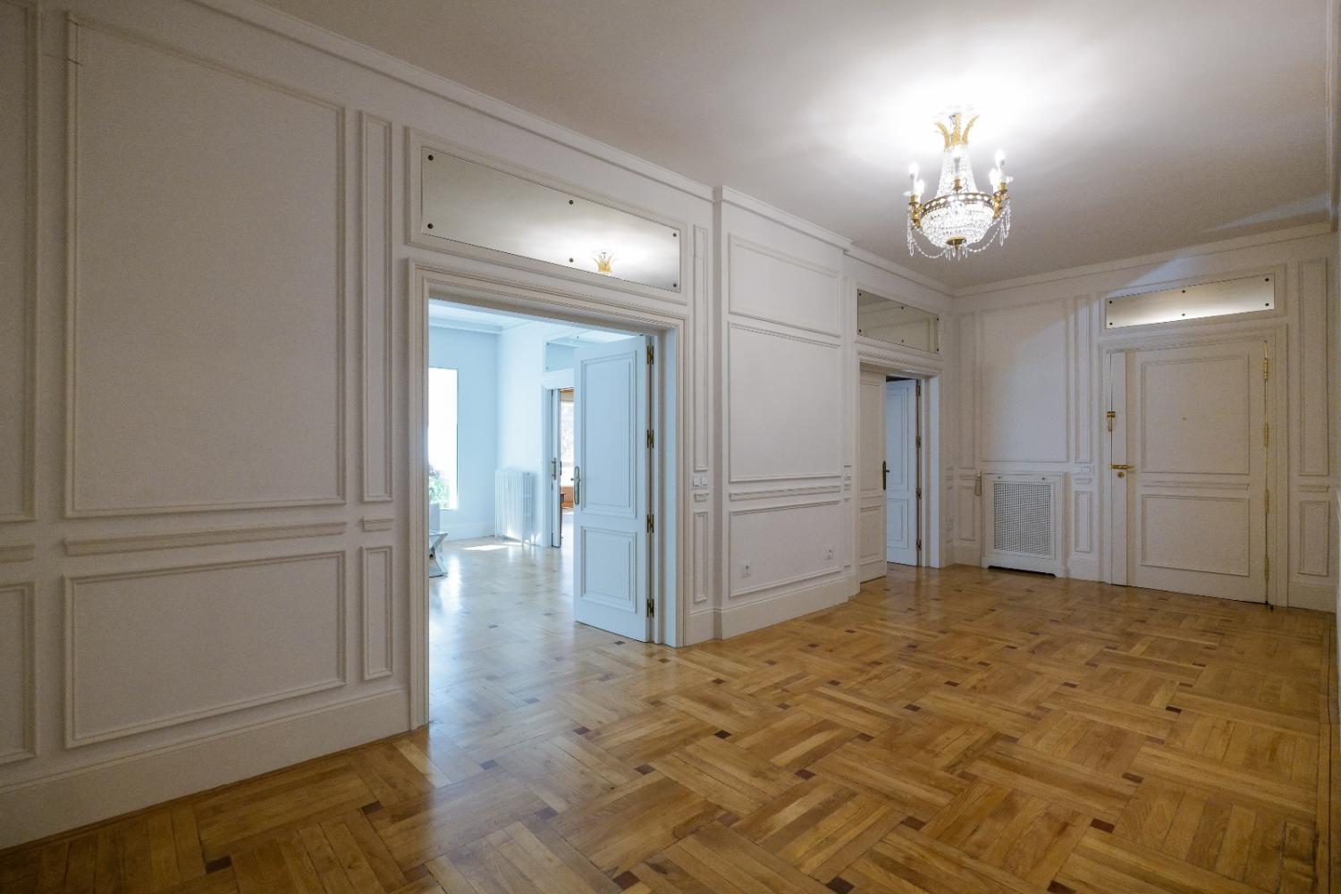 Alquiler de espectacular vivienda de 420 m2 útiles en la zona del Viso, junto al Paseo de la Habana, con seguridad y portero residiendo en la finca. Amplísima zona de recibo. Gran hall de entrada, dos salones con salida a terraza acristalada, comedor independiente y una estupenda biblioteca de 30 m2 en madera de roble. Aseo de visitas. Cuatro dormitorios dobles, teniendo tres de ellos su baño en suite y otro baño en el pasillo junto a éstos. Dormitorio de servicio doble con su baño. Amplísima zona de servicio distribuida en office, breakfast room, cocina y zona de lavado. Electrodomésticos: cocina con isla AEG de seis fuegos, cuatro de gas y dos eléctricos. Campana, horno y microondas Siemens, lavadora y lavaplatos Miele. Dos neveras grandes con congelador y un congelador adicional. Techos de tres metros de altura, luces LED en toda la casa, maravillosos suelos de madera y grandes ventanas con persianas eléctricas y estores. Dos puertas acorazadas. Dos escaleras de acceso, una de servicio con montacargas y otra principal con dos ascensores. Se alquila vacío. Plaza de garaje de acceso directo.
