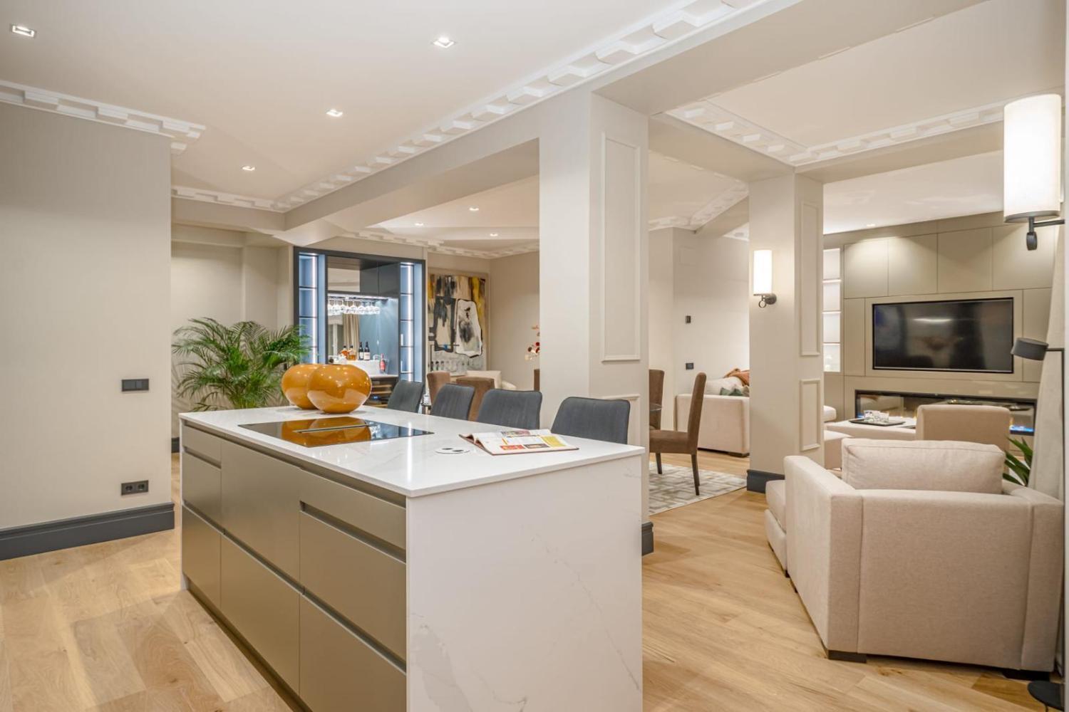 Magnifico piso a estrenar con una reforma con las mejores calidades. se vende decorado y amueblado en un estilo elegante y neutro. Situado en Recoletos, ahora mismo considerado la zona mas atractiva del barrio de Salamanca. Consta de hall de entrada, un gran salón y comedor con cocina integrada. Aseo de invitados. Dormitorio principal en suite y otros dos dormitorios todos con sus baños en suite. Aacc en toda la vivienda. Tiene un trastero. Portero fisico.