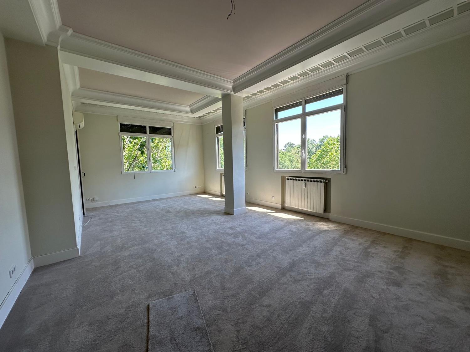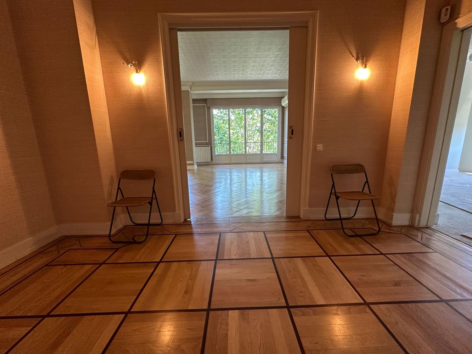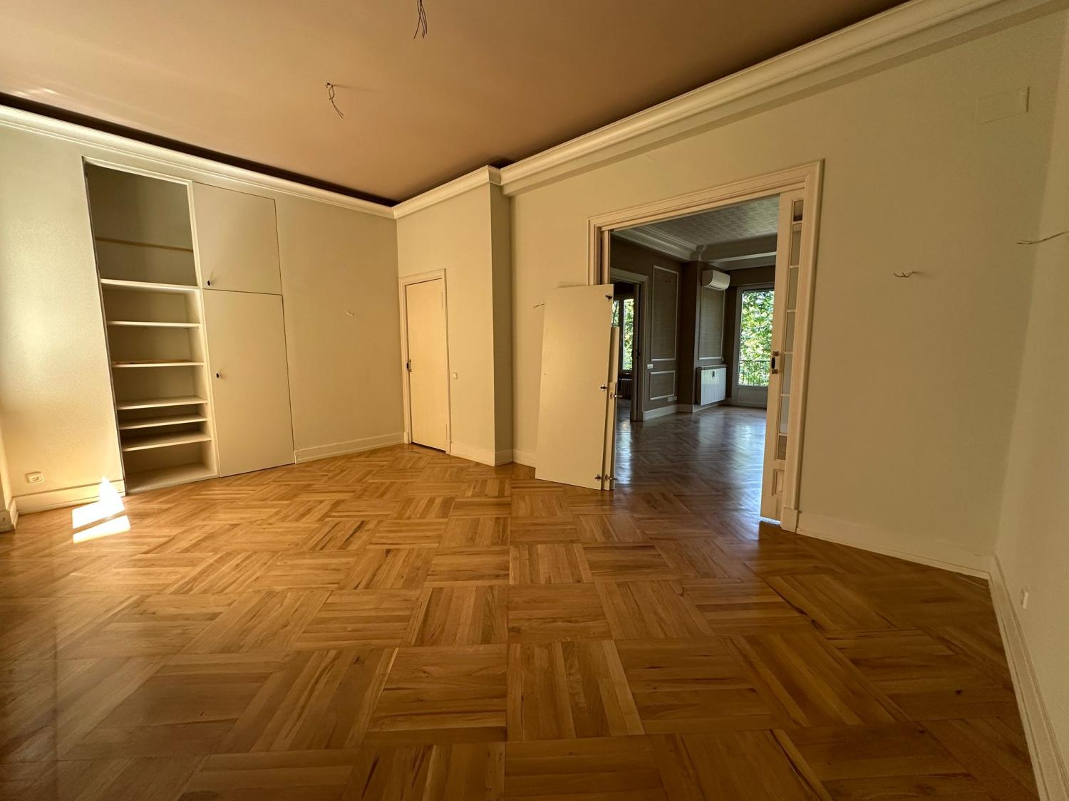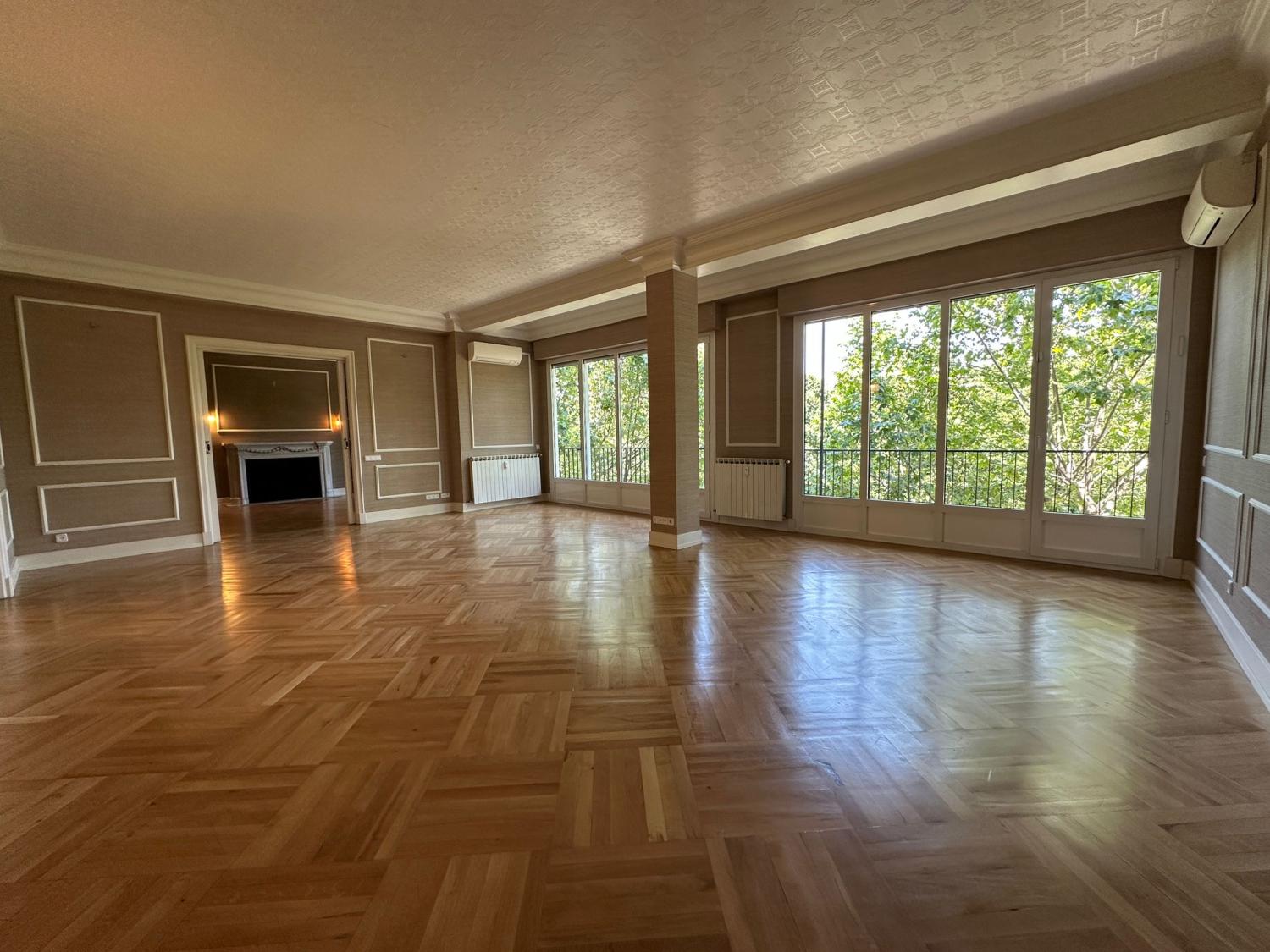 Fantástico piso, frente al Retiro. Hall de entrada, salón, comedor, biblioteca, cuarto de juegos. Terraza de 10 m2 aprox. sobre el Retiro. Cuatro dormitorios con tres cuartos de baño, dos de ellos en suite. Cocina, office. Dormitorio y baño de servicio. 2 plazas de garaje. Portero 7 días de la semana.