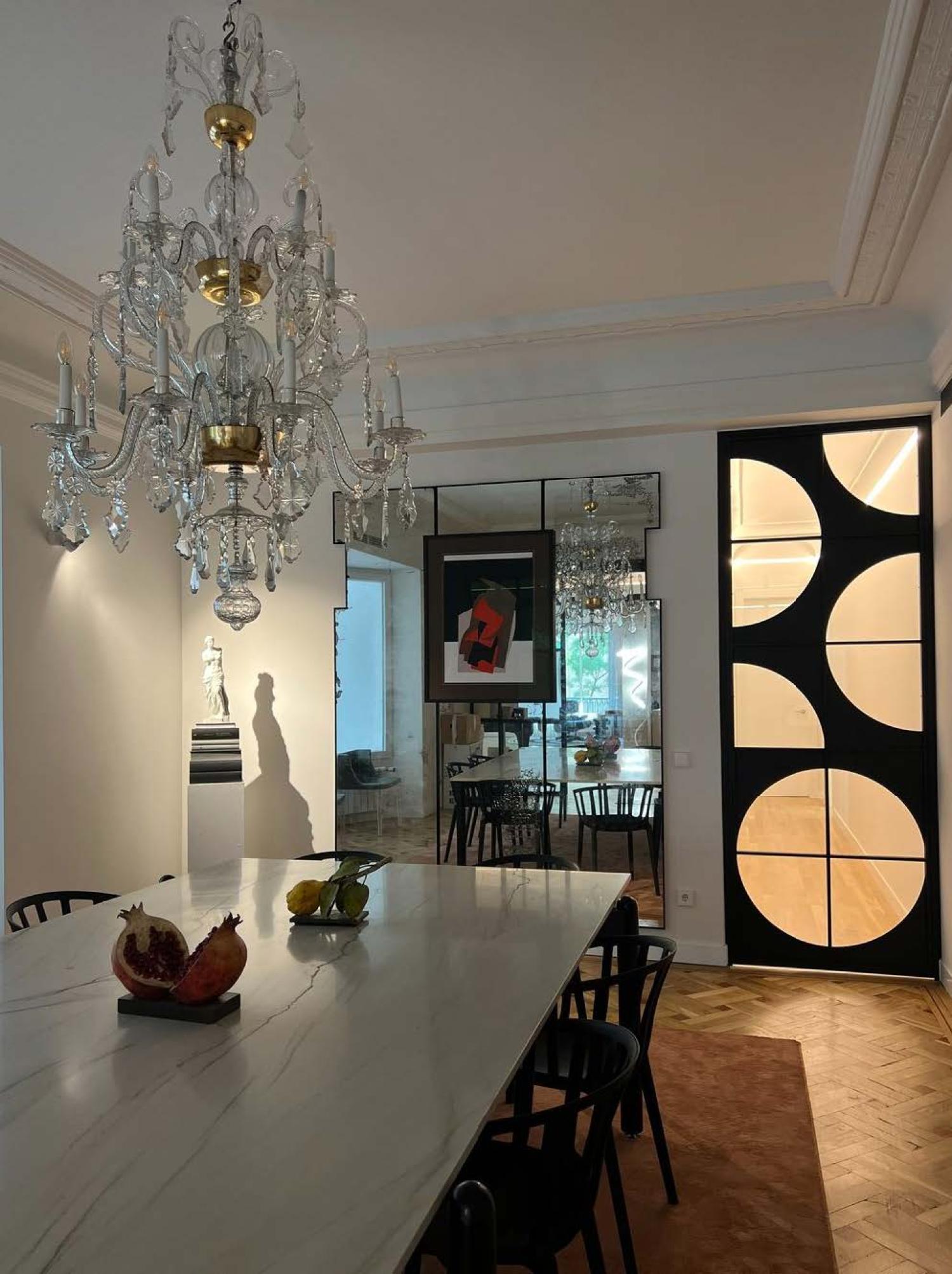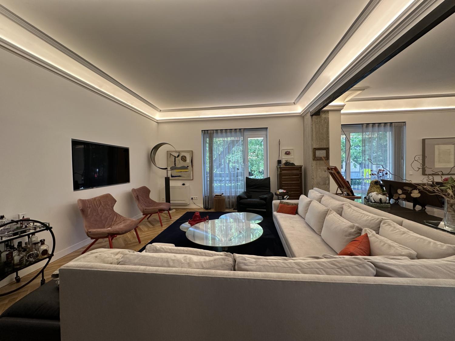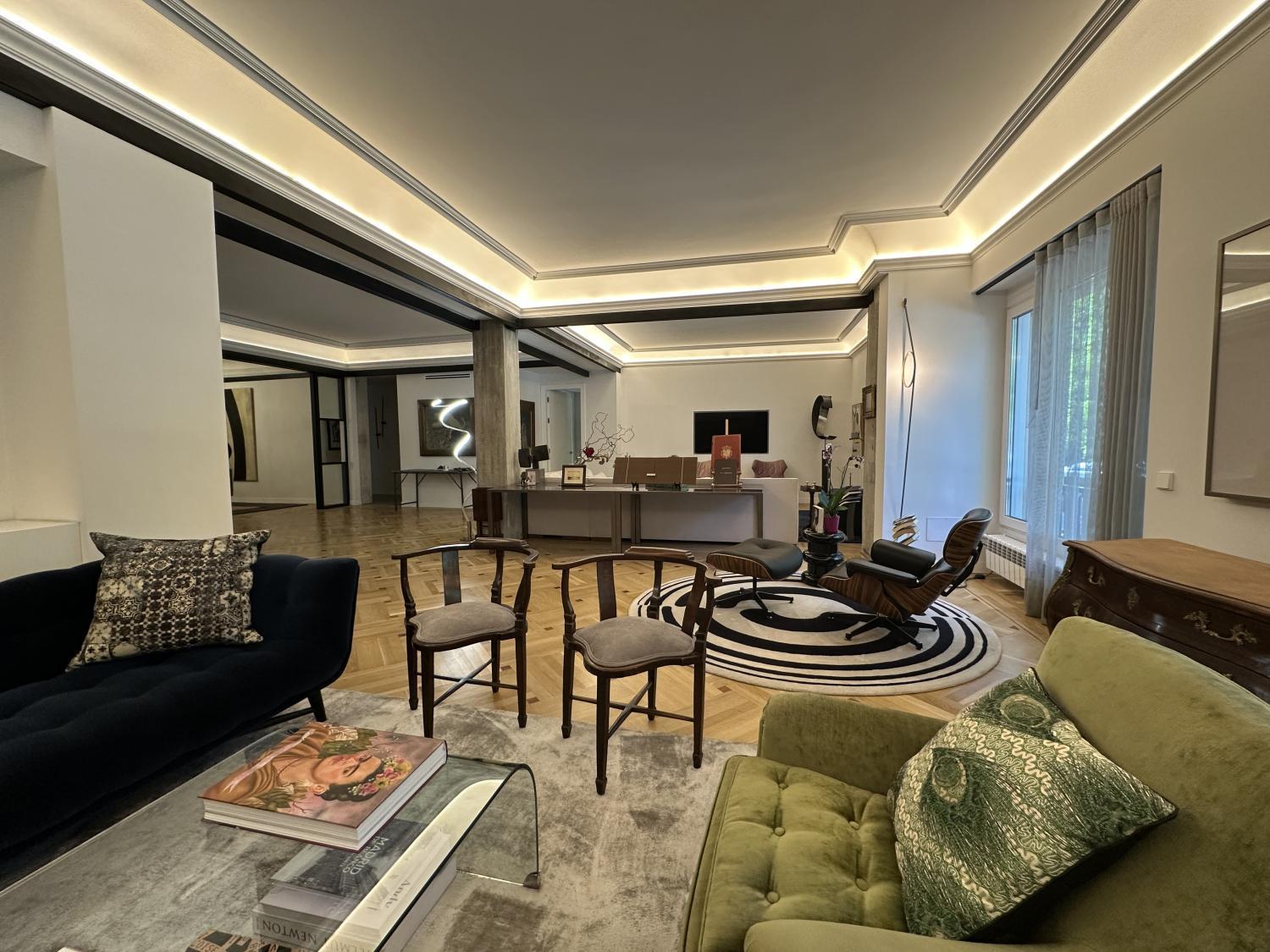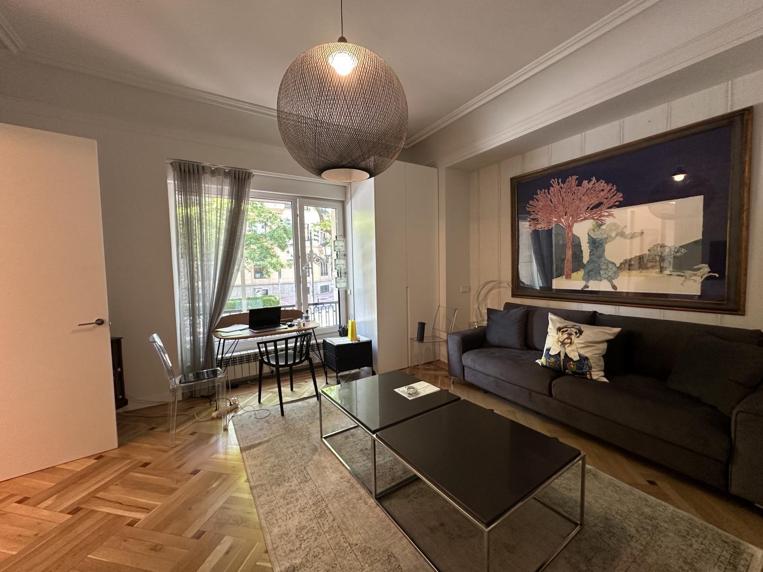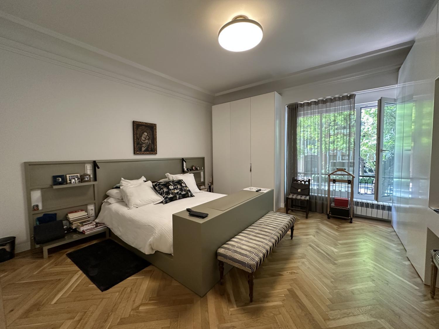 Estupendo piso en edificio de corte clásico con precioso portal y escalera. Orientación sur y recién reformado con las mejores calidades con magnifico proyecto de diseño. Gran hall de entrada abierto a un fantastico salon en dos ambientes, despacho con su cuarto de baño lo cual lo hace un posible dormitorio de invitados. Gran comedor independiente. Desde el salon se accede al dormitorio principal, muy amplio con un buen cuarto de baño y otros 2 dormitorios con su baño en suite. Cuenta con otros 2 dormitorios que comparten baño Desde el comedor se accede a la cocina y la zona de lavado y cuarto de servicio con su baño. Tiene plaza de garaje de acceso directo. Trastero Portero.